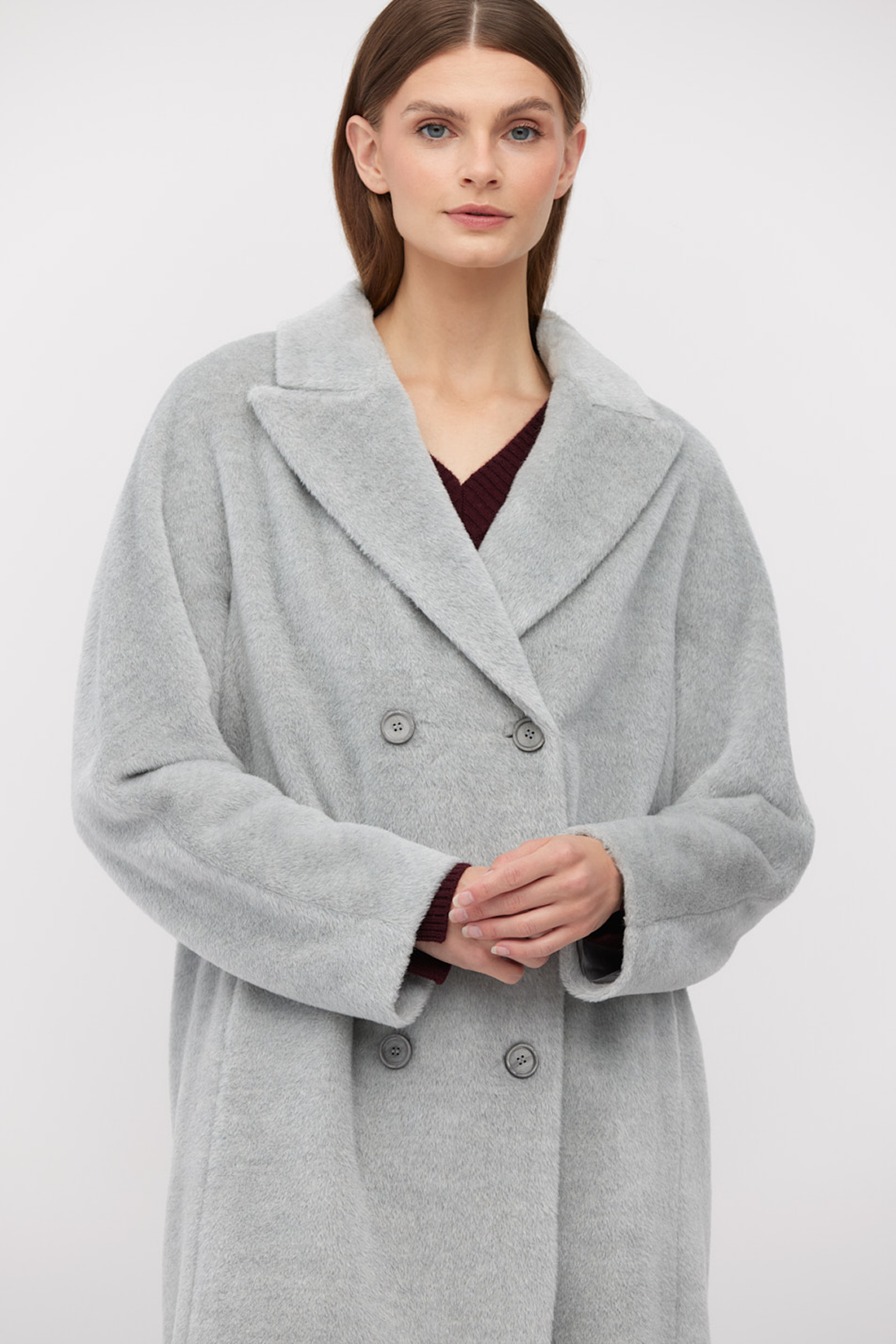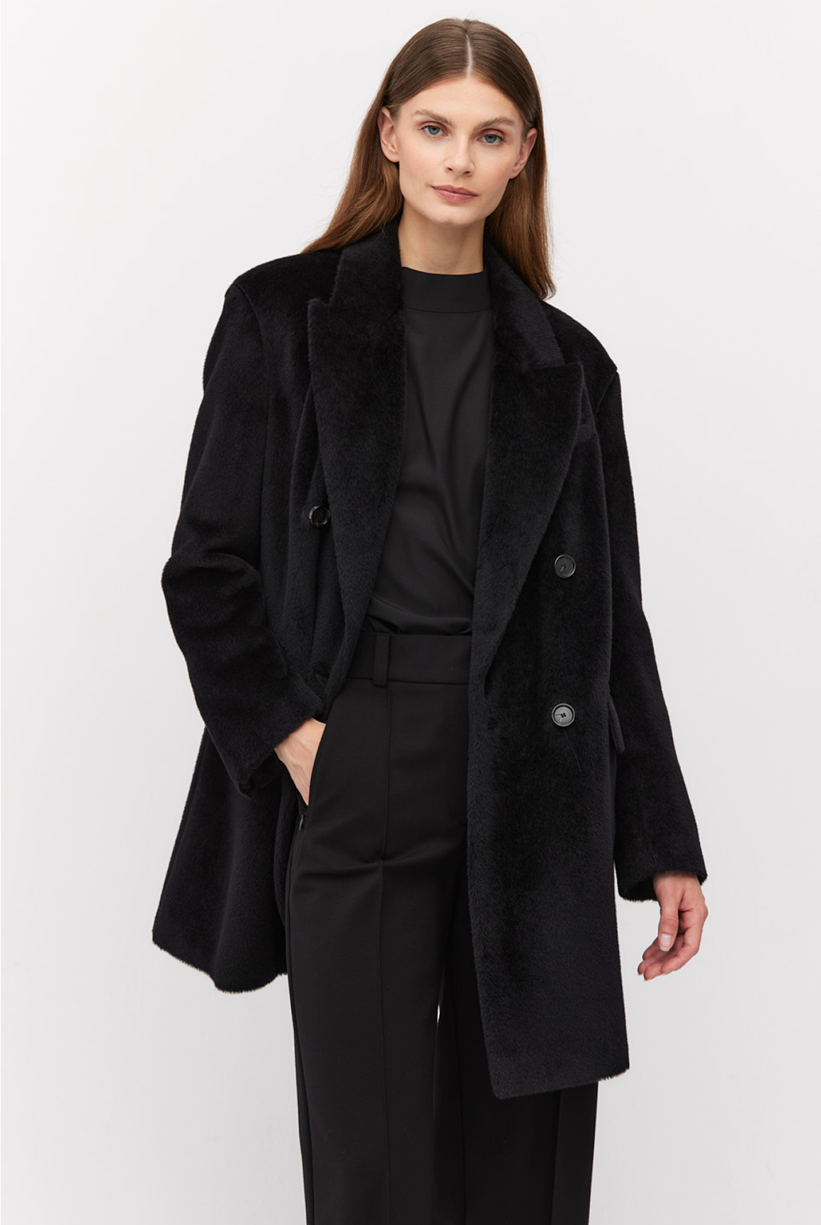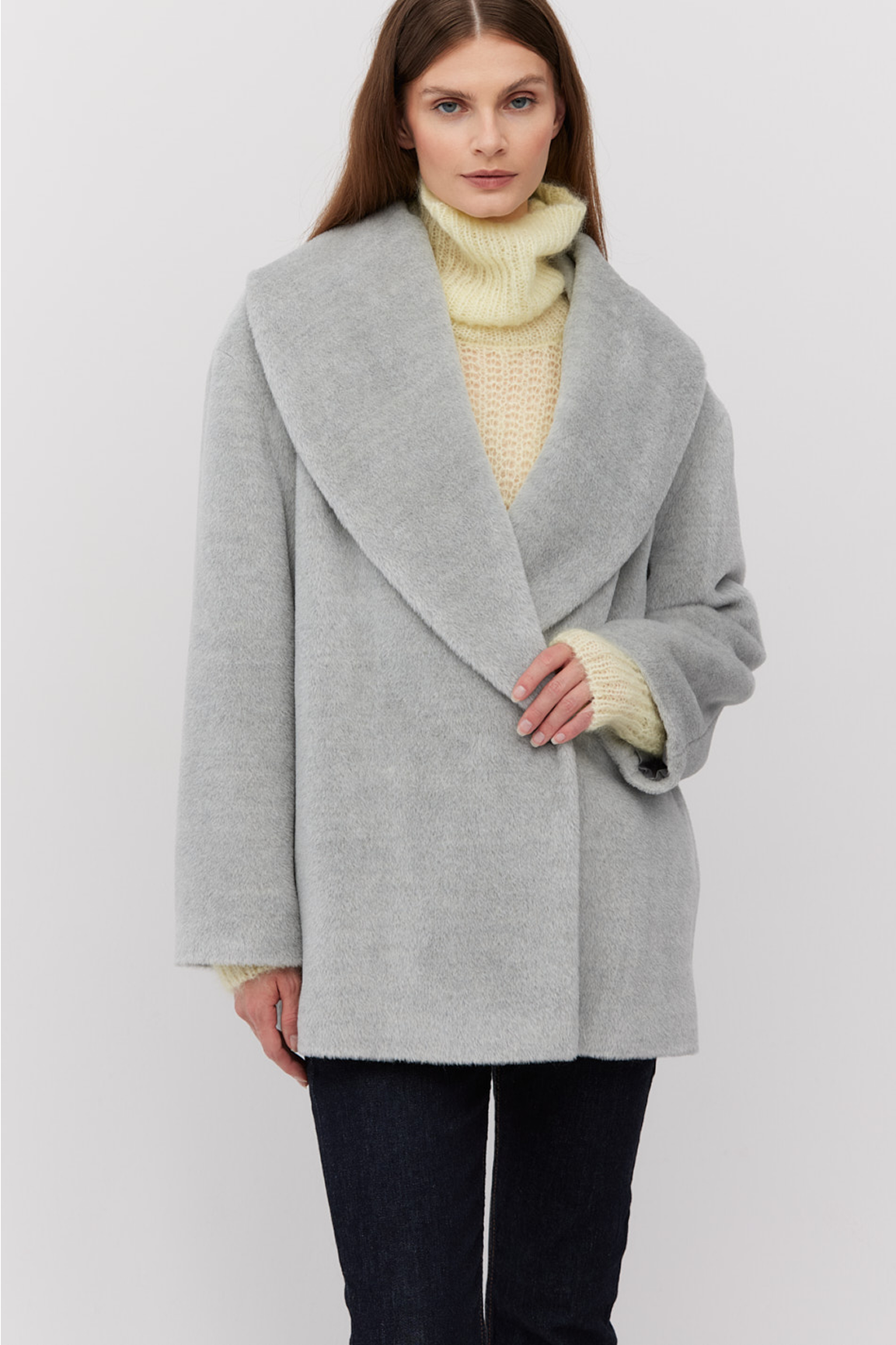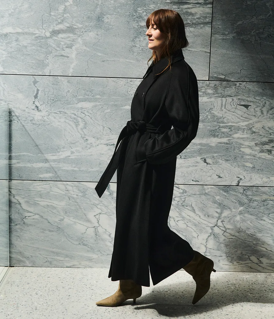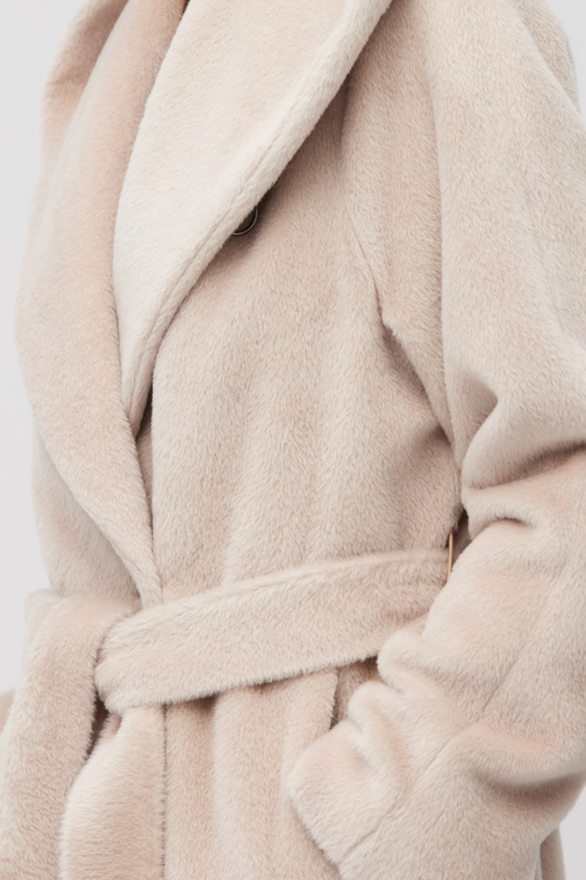 V této sezóně poprvé představujeme látku, která kombinuje 70 % mladé alpaky Suri a 30 % panenské jehněčí vlny. Tato dvě vzácná vlákna, sklizená v nejměkčím stavu, vytvářejí látku s dokonalým omakem, hedvábným leskem a výjimečně lehkým pocitem. Díky inovativní povrchové úpravě jsme vytvořili kabáty Suri v jasných, zářivých odstínech – od pudrově růžové přes bělenou béžovou až po jemně šedou.