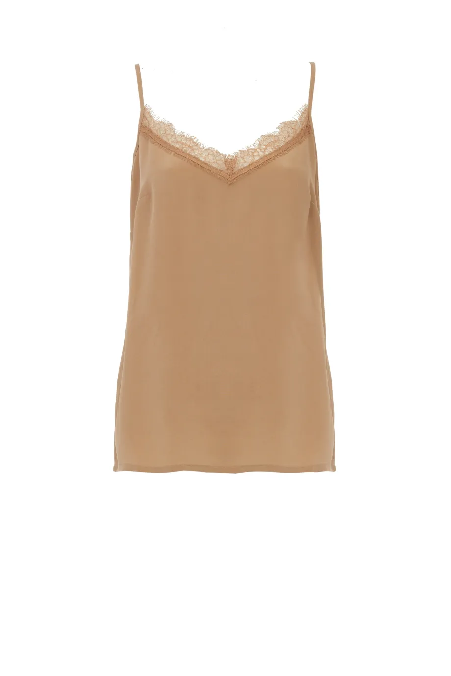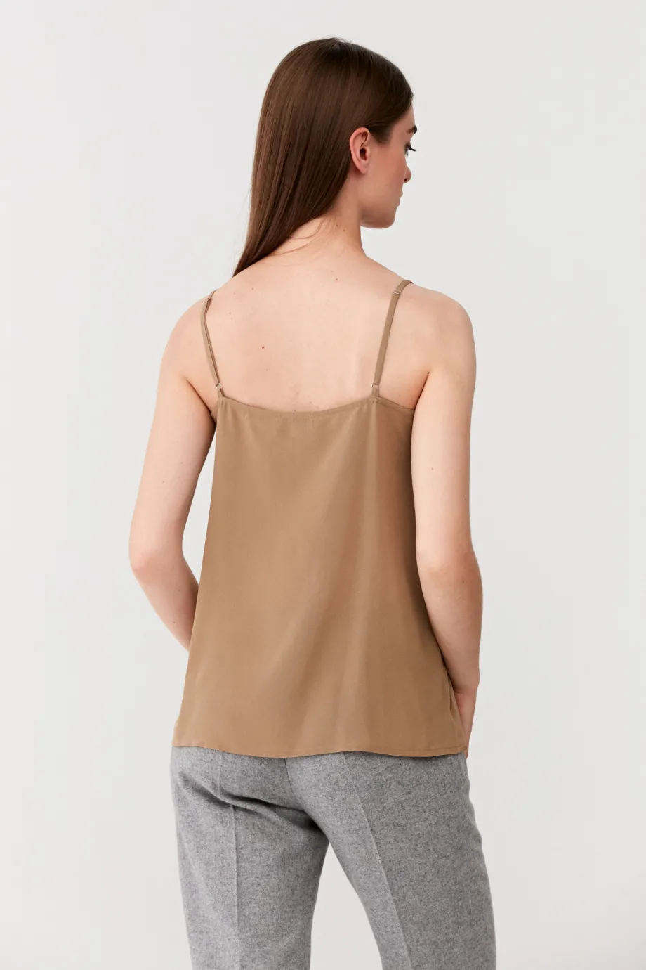 Béžový hedvábný top na úzkých ramínkách