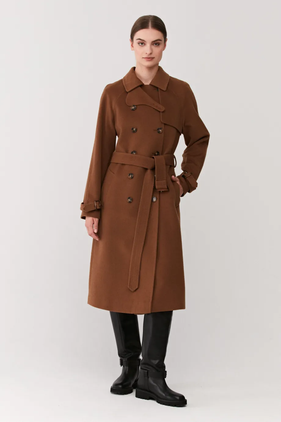 Hnědý trenčkot z kašmíru