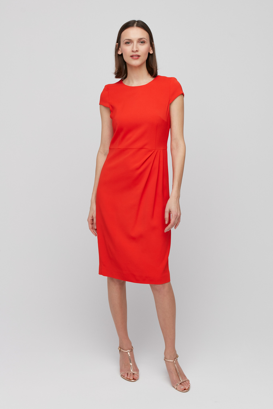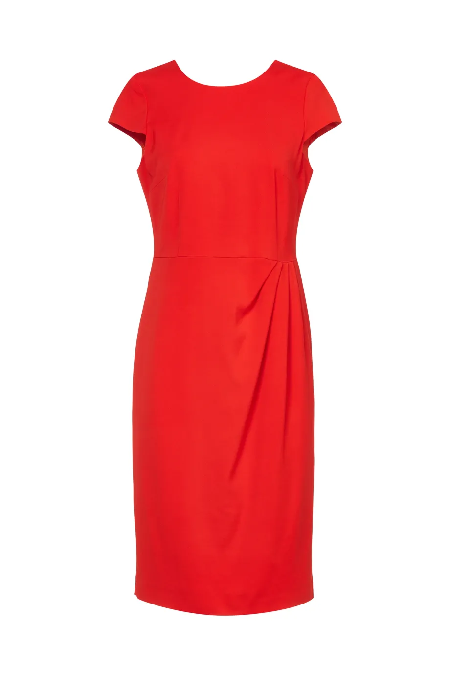 Červené šaty s krátkým rukávem z linie Dolce Vita, která je určena na svatby a jiné výjimečné příležitosti. Střih blíže tělu má podšívku a zapínání na zip. Speciální řasení zdůrazňuje pas, a délka ke kolenům dodává celku eleganci. Chcete vytvořit kompletní stylizaci? Podívejte se na naše další produkty a těšte se z výjimečné kvality našich oděvů.