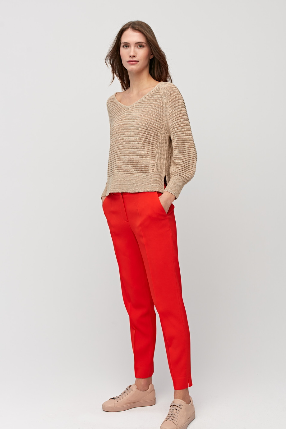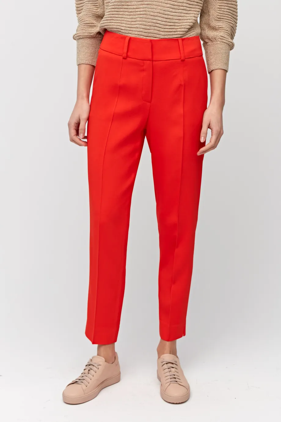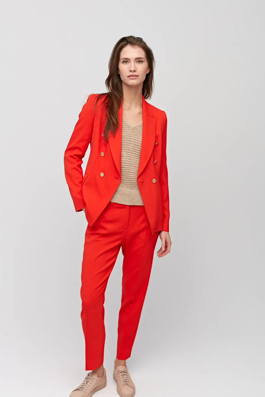 Oblečte si červené kalhoty ke kostýmu, abyste zdůraznili svůj profesionalismus a sebevědomí během podnikatelských schůzek. Elegantní dámské kalhoty do kanceláře nejsou jen modely v námořnické modři a černé. V této sezóně sázíme na super módní energickou červenou.