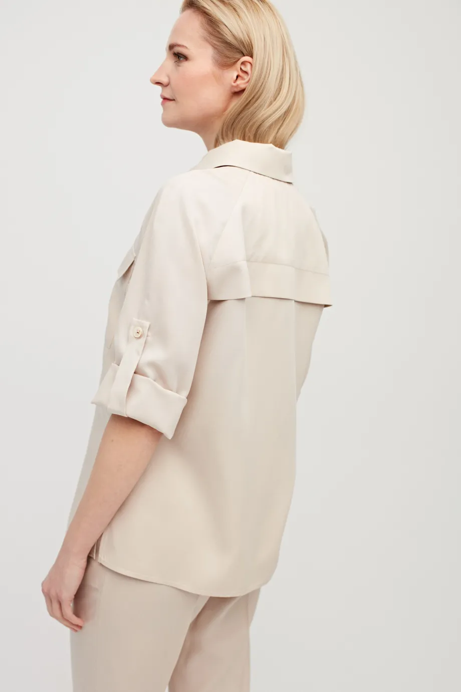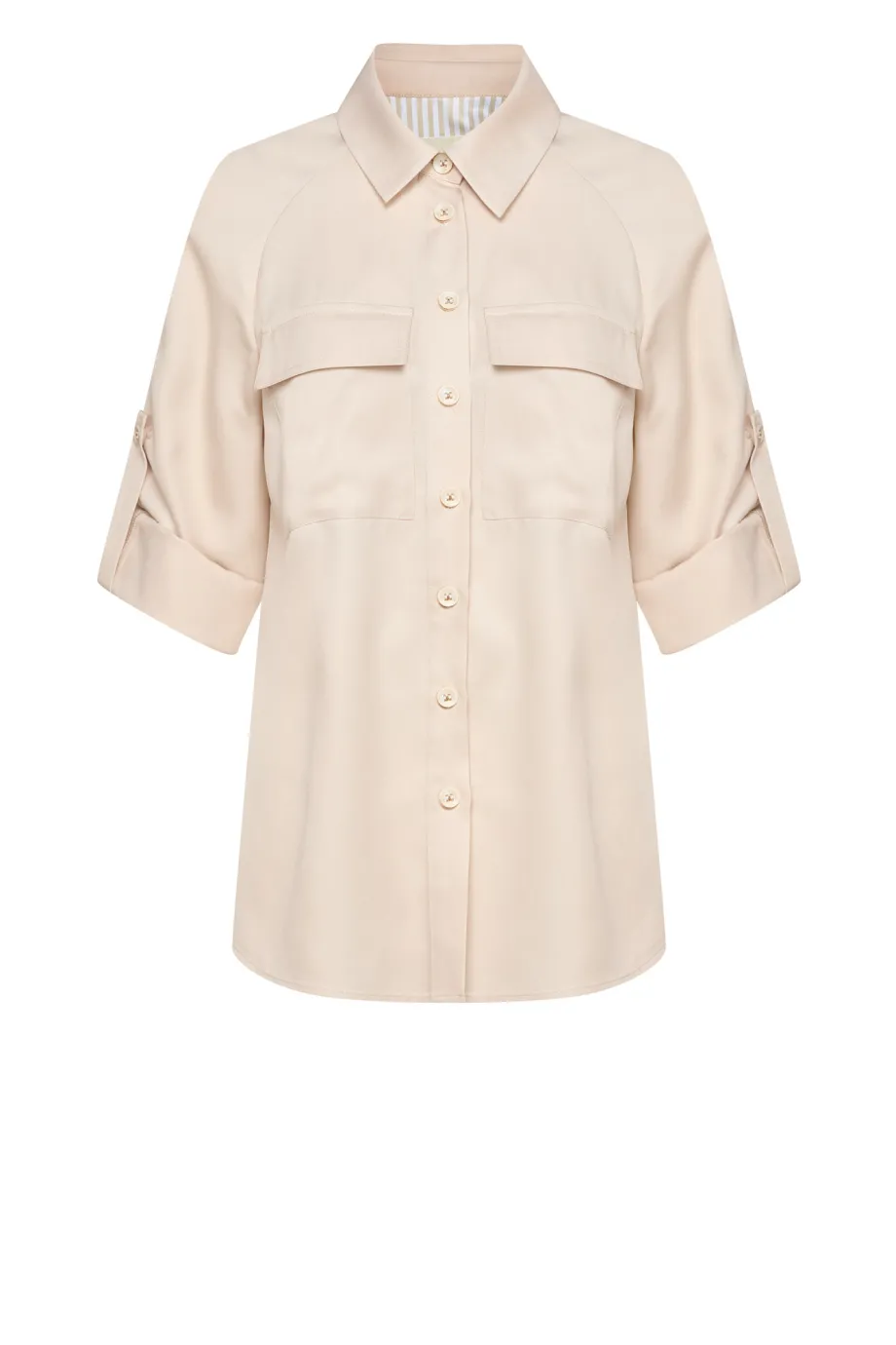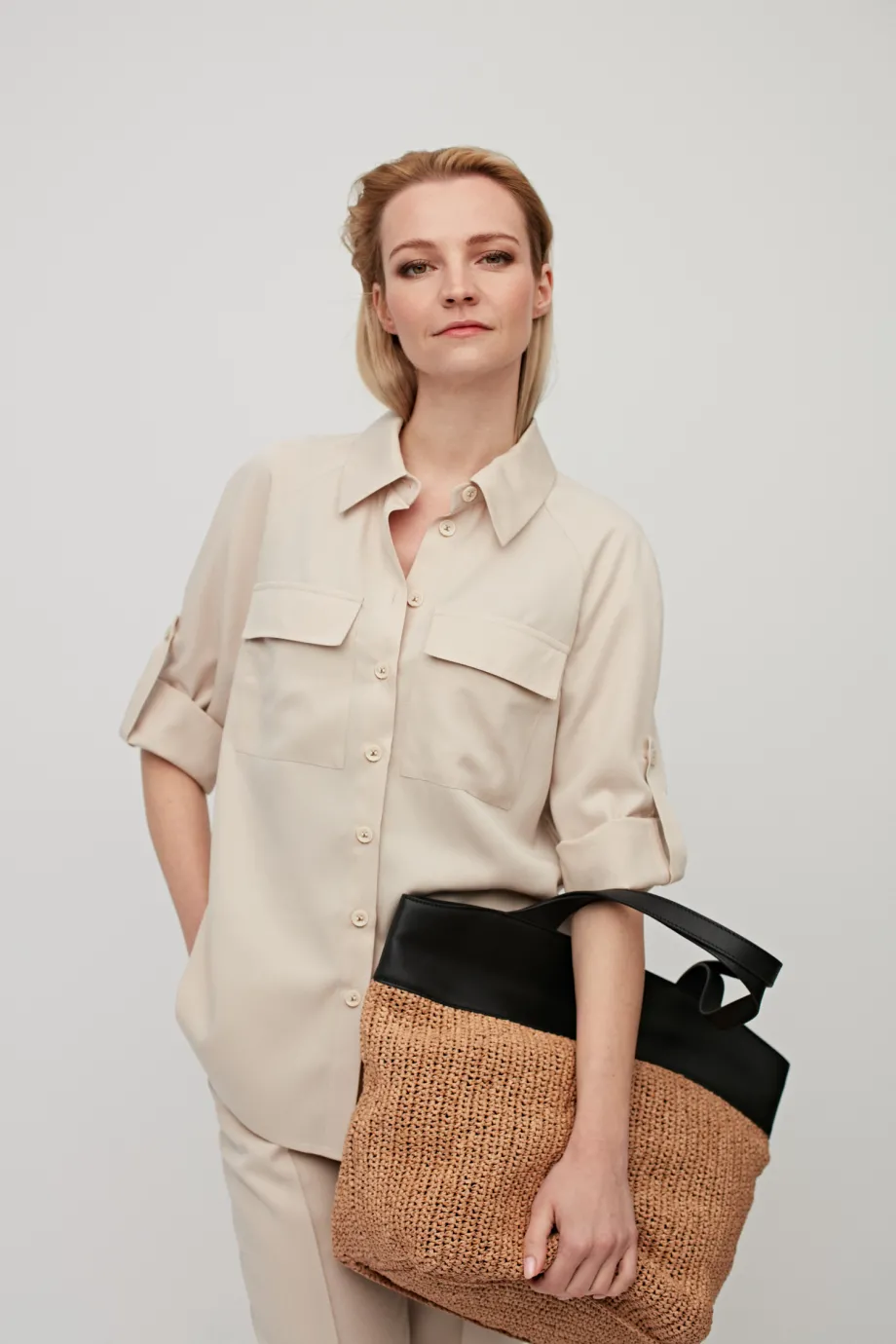 Toužíte po vzhledu à la Meryl Streep ve filmu "Vzpomínky na Afriku", ale v elegantním a minimalistickém provedení? Máme pro vás něco! Naše béžová košile s kapsami je volný, ženský a neuvěřitelně pohodlný model inspirovaný oblečením na exotické výpravy. Doplňte ji o kalhoty jog ger ze stejné látky a vytvořte supermoderní letní outfit ve stylu Safari!