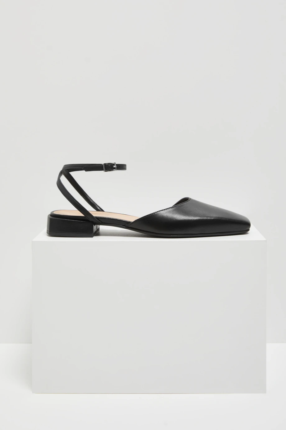 Tyto černé kožené boty lze popsat jako sandály s dobře zakrytým předkem nebo baleríny bez paty. Model byl navržen tak, aby se hodil k svatebním kreacím, smart casual outfitům nebo typicky byznys stylizacím. Elegantní letní vzhled ve stylu Patrizia Aryton a bezkonkurenční pohodlí pro nohy? To přesně zaručují naše kultovní boty se zapínáním na kotníku.