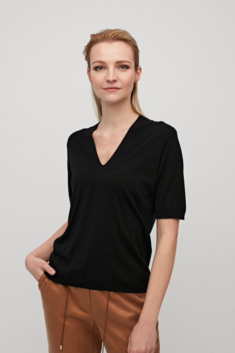 Černá vlněná blůza s výstřihem do V