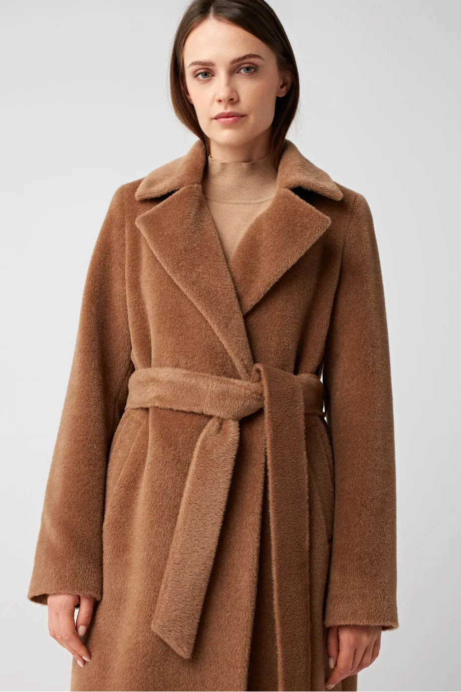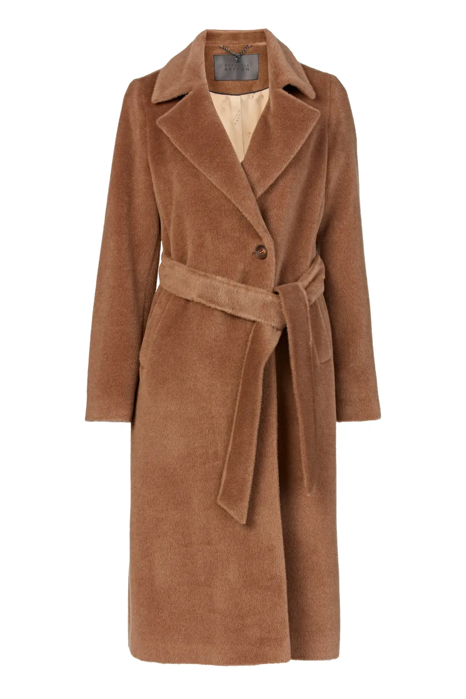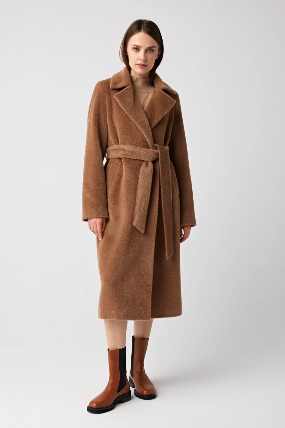 Model dostupný ve 2 barvách: camelový a červený kabát s páskem z vlny suri alpaky