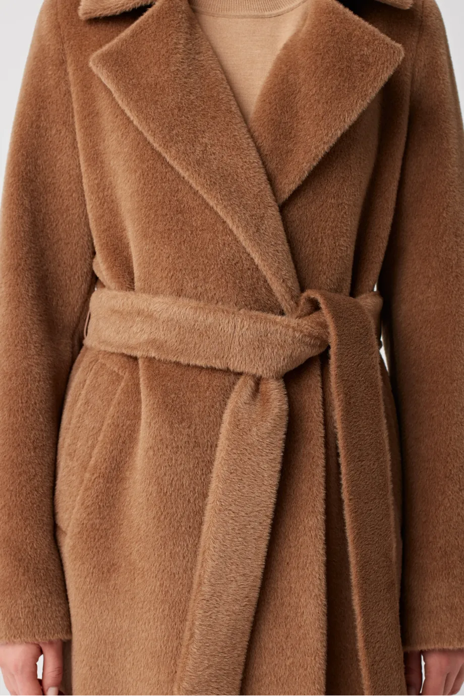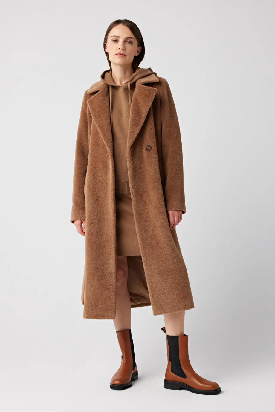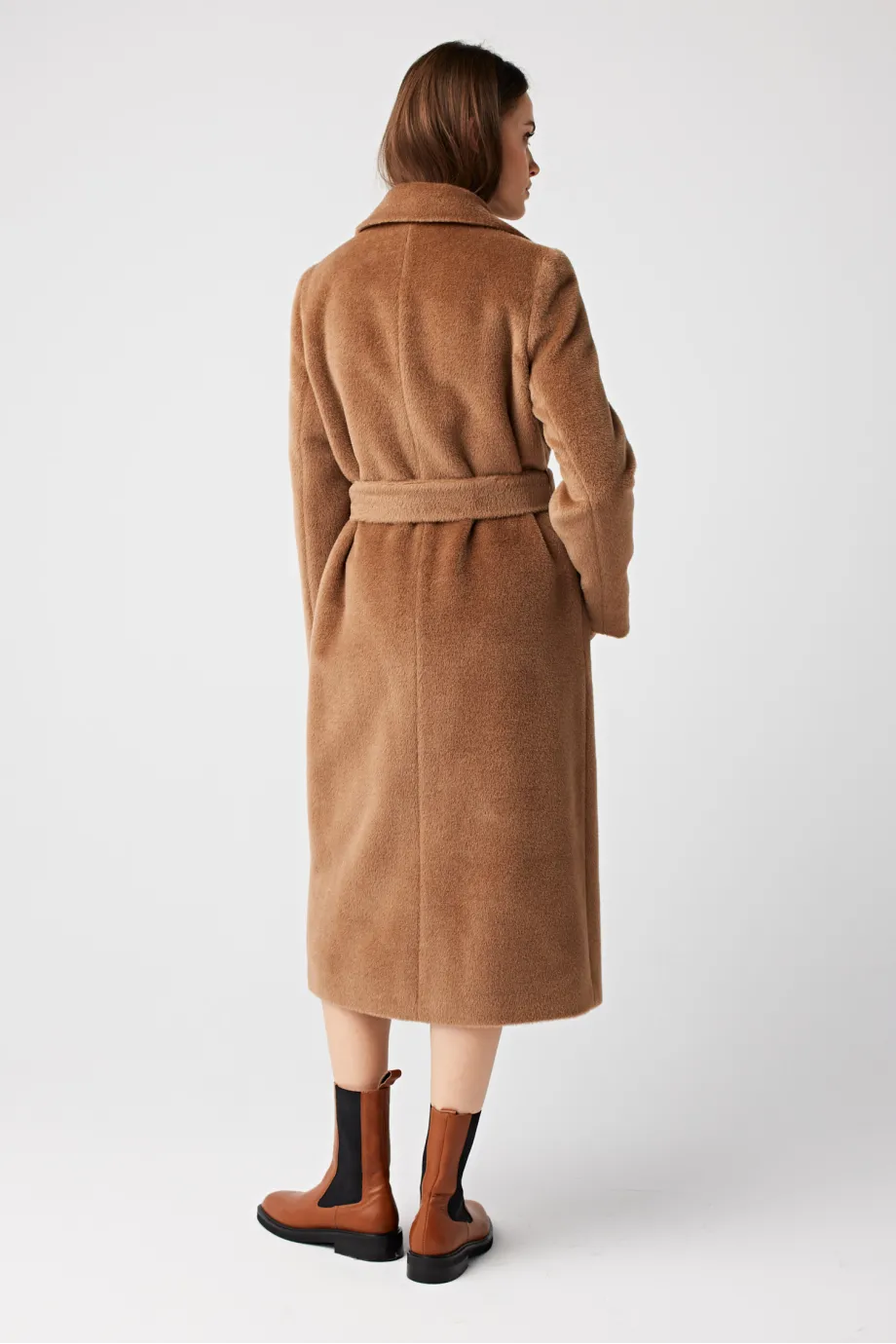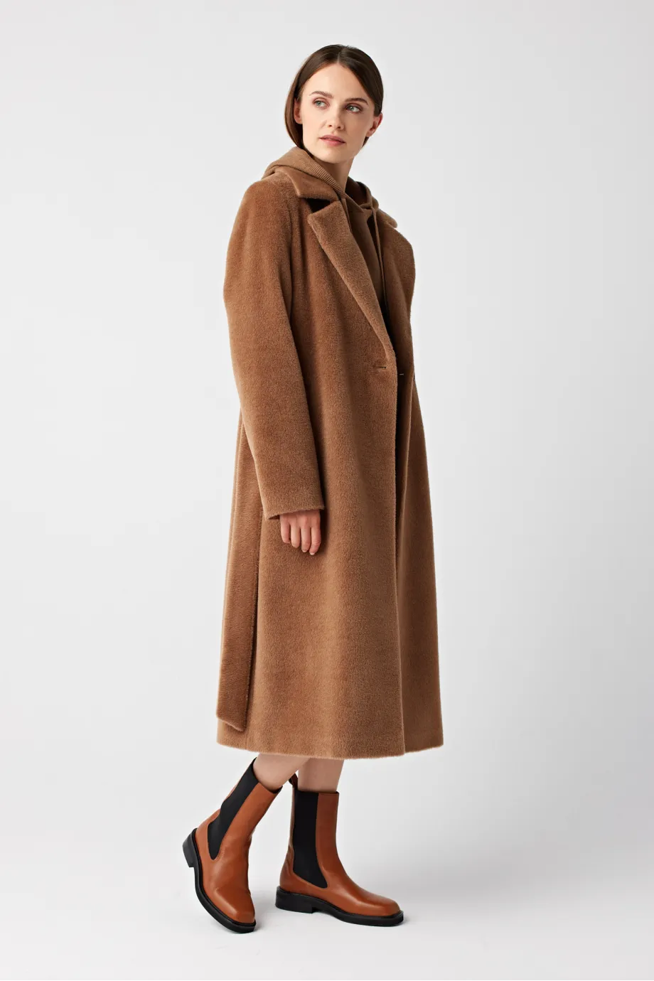 Model dostupný ve 2 barvách: camelový a červený kabát s páskem z vlny suri alpaky