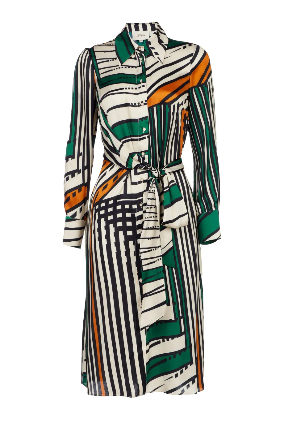Šaty 100% viskóza bez podšívky jsou jedním z našich návrhů ideálních na teplé dny. Splývavá tkanina se saténovou úpravou vás okouzlí svou jemností, zatímco grafický vzor zdůrazní vaši osobnost. Midi šaty s pruhy se zapínají na knoflíky, mají límec a pásek zdůrazňující pas, což umožňuje přizpůsobení šatů postavě. Dopřejte si neobyčejný módní zážitek výběrem výjimečných návrhů od Patrizia Aryton.