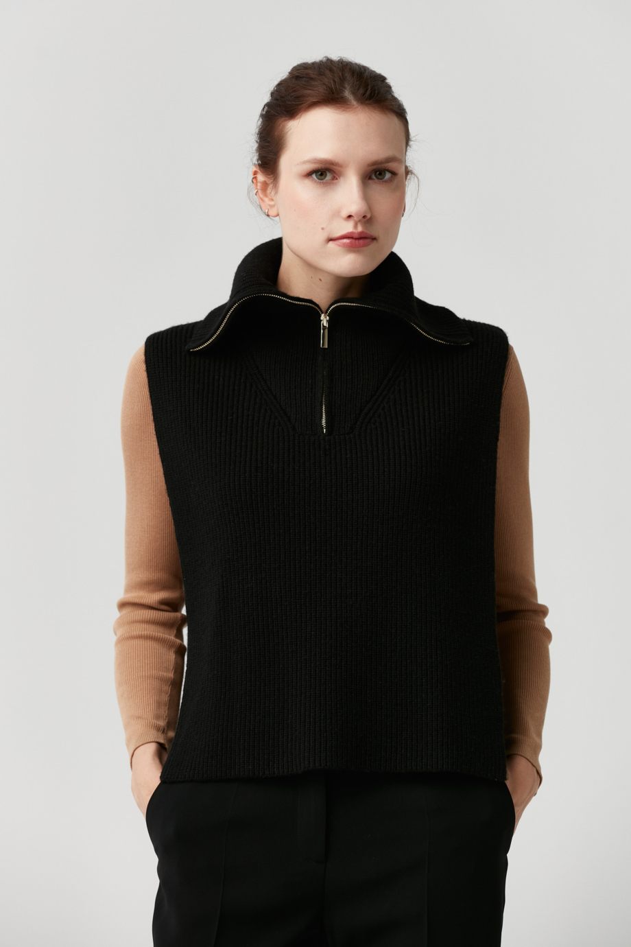 Třešničkou na dortu každého kompletního outfitu jsou vhodně zvolené doplňky. Černá vesta z merino vlny není jen stylovým doplňkem, ale také funkčním prvkem šatníku, který zateplí každý podzimní a zimní outfit. Hluboká černá se skvěle hodí k soupravám složeným z oděvů v jiných základních barvách. Bezrukávník merino Patrizia Aryton dodá eleganci neformálním setům a těm oficiálnějším dodá lehce sportovní charakter.