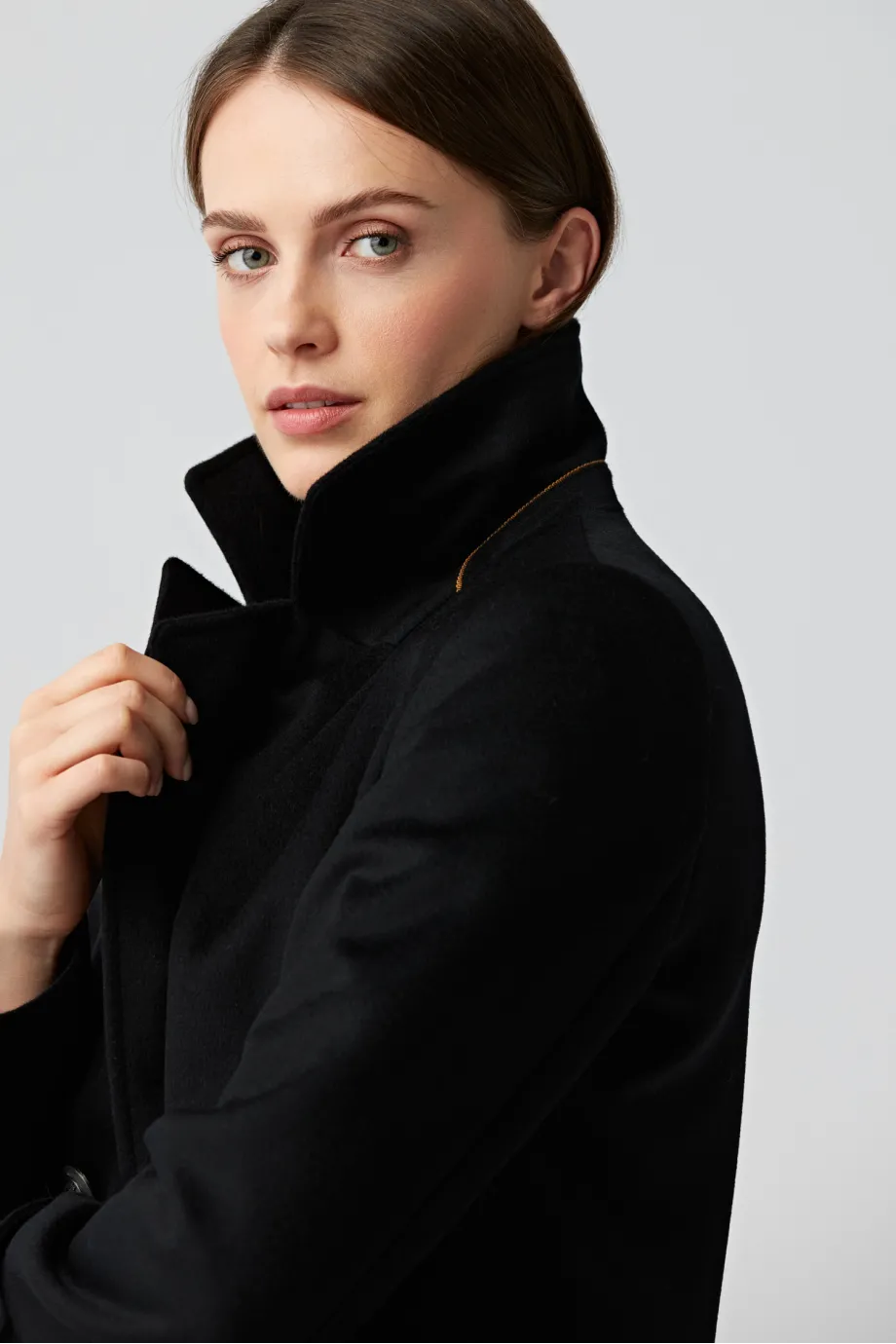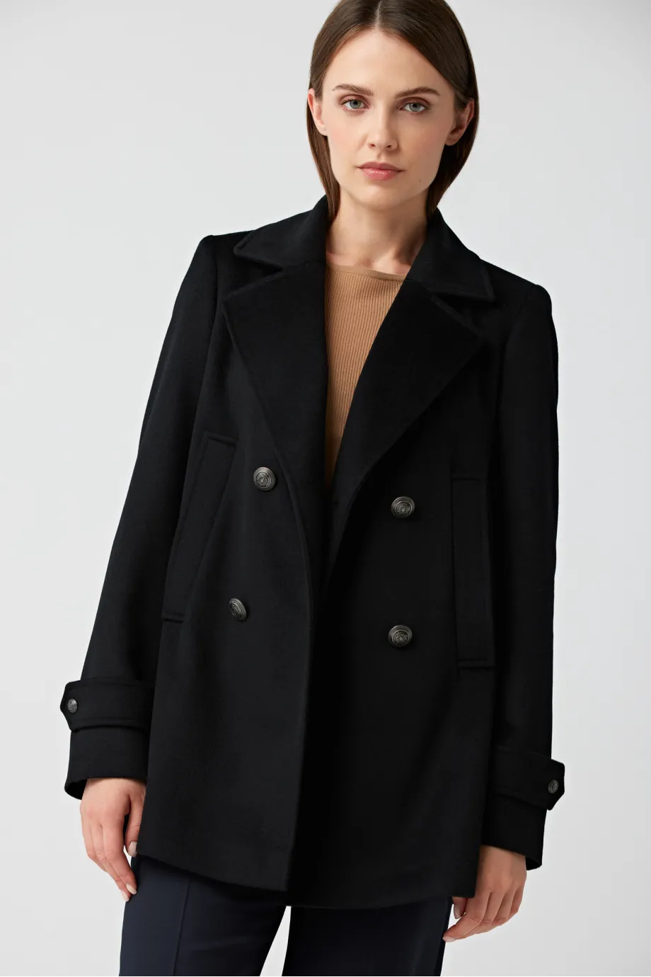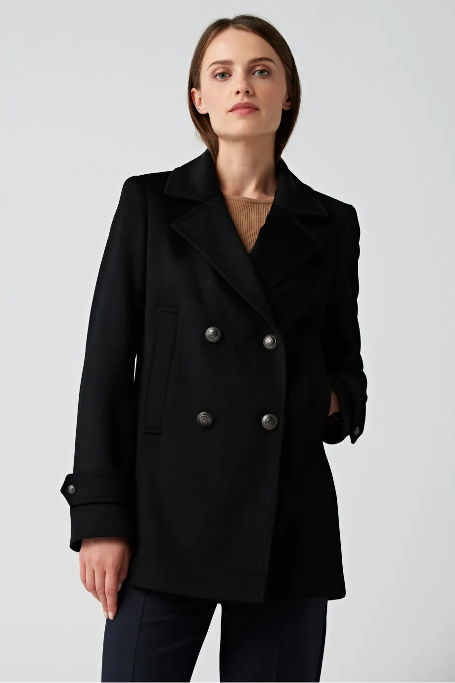 Dobře zvolený kabát dotváří elegantní outfit. Černá vlněná bunda je stálým prvkem garderoby těch, kteří chtějí zdůraznit svůj bezchybný a profesionální vzhled. Clara je typická námořnická bunda v dámském provedení, kterou mnoho žen nosí místo saka. Avšak i když to tak nevypadá, tento model je vhodný nejen pro cigaretové kalhoty, šaty a business sukně, ale i pro koktejlové a smart casual outfity. Poznejte všechny výhody, které nabízí exkluzivní dvouřadá bunda Patrizia Aryton.