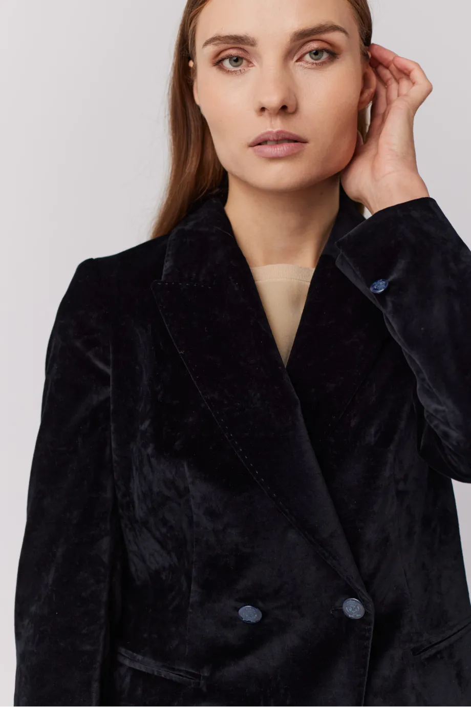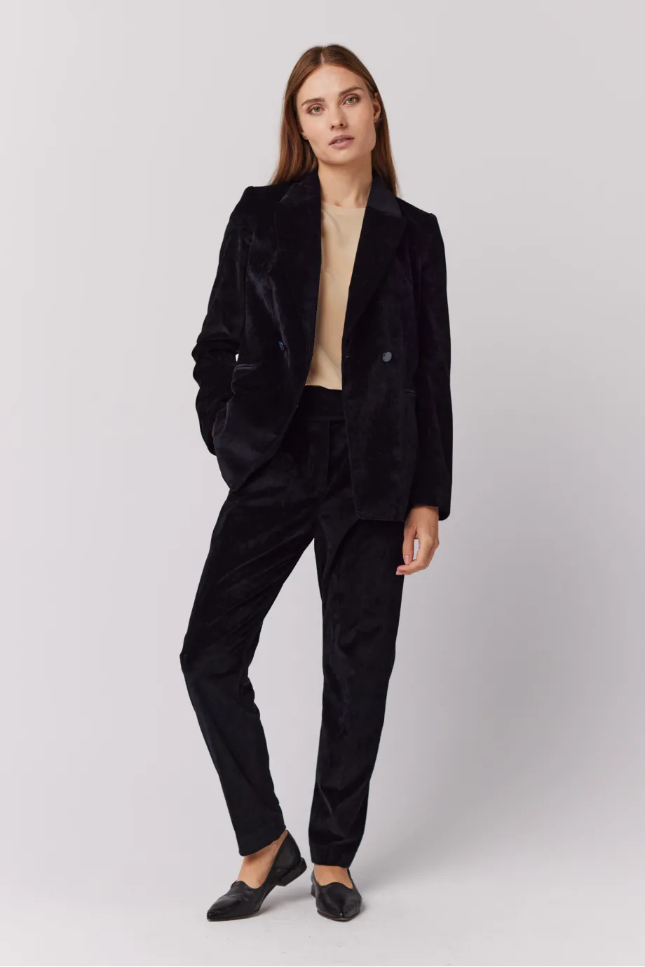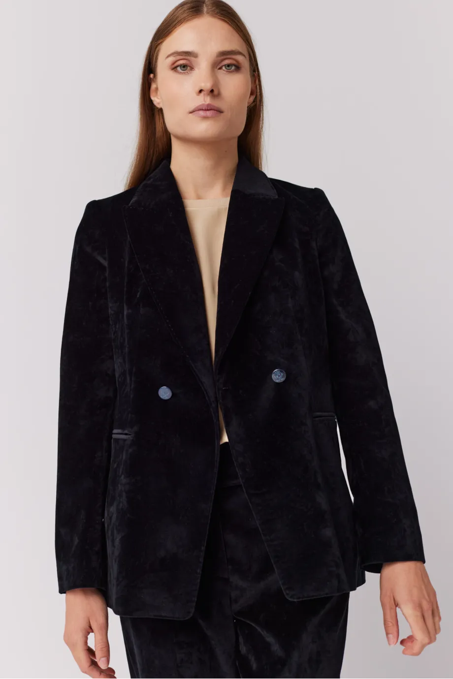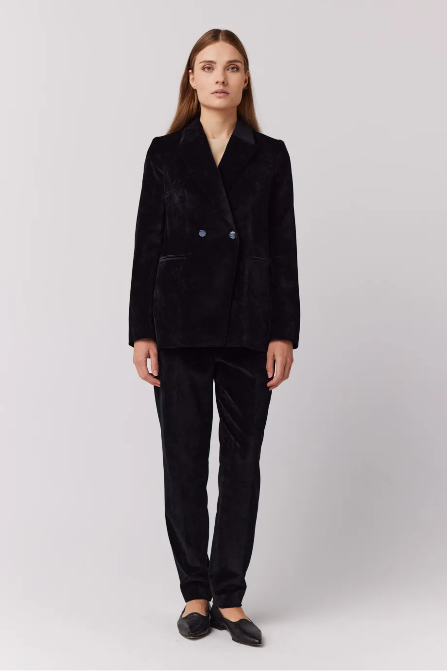 Černé sametové dvouřadé sako