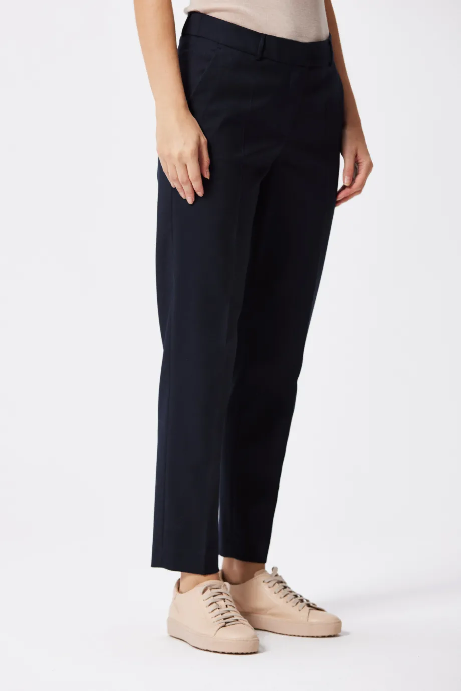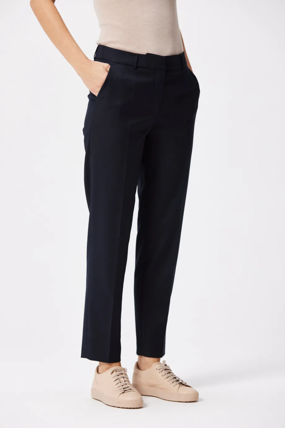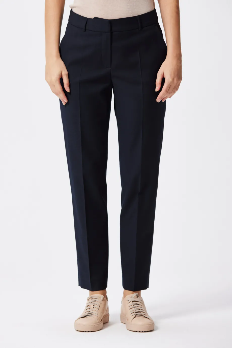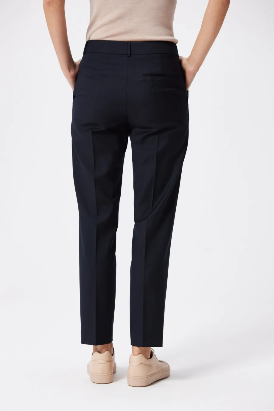 S hrdostí představujeme naše výjimečné námořnické modré kalhoty ke kostýmu - perfektní volba pro ženy podnikání, které si cení elegance, kvality a profesionálního vzhledu. Kalhoty vyrobené ze 100% nejkvalitnější vlny jsou kvintesencí luxusu a vytříbeného stylu. Vytvořené s péčí o každý detail mají skrytý zip, poutka a kapsy pro zlepšení pohodlí nošení. K doplnění soupravy vyberte kabát vyrobený ze stejné tkaniny a vytvořte celkový vzhled, který podtrhne vaši eleganci v každé situaci.
