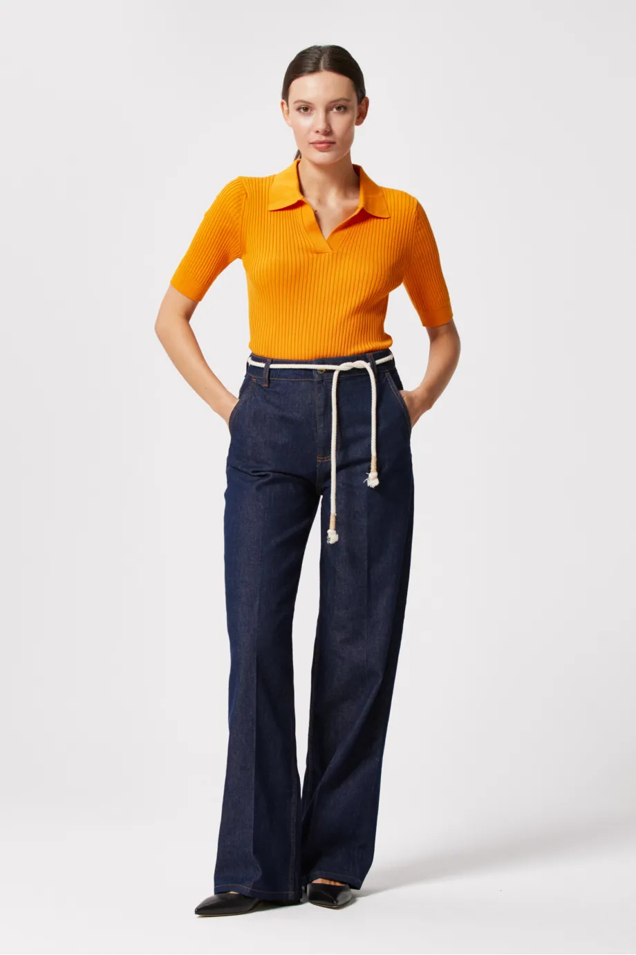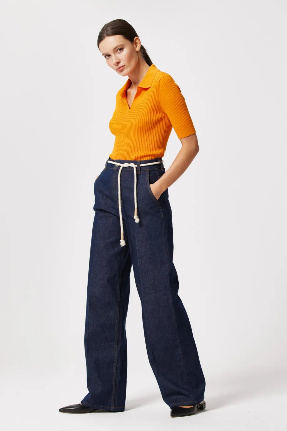 Modelka na fotce měří 177 cm, nosí velikost 36.