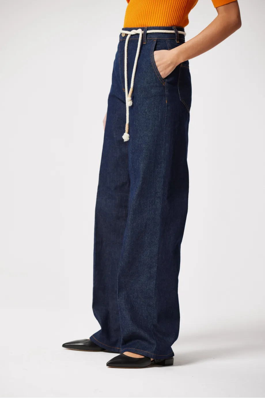 Námořnické modré široké džínové kalhoty