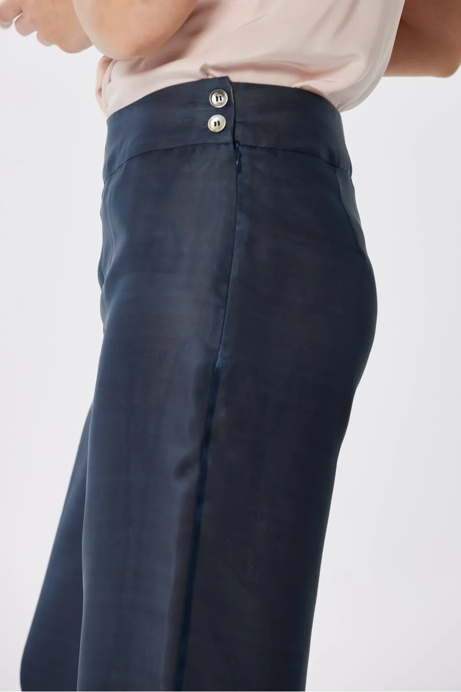 Zapínání na zip na levém boku a na knoflíky z perleťové mušle