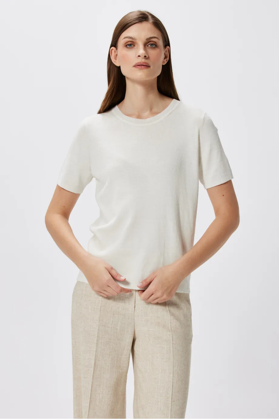 Bílá blůza s lnem a hedvábím