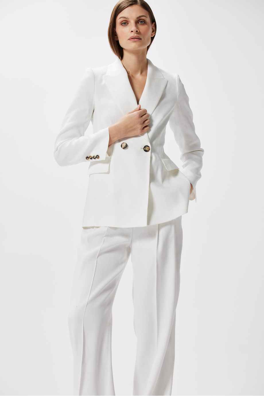 Bílý sak z lnem k obleku