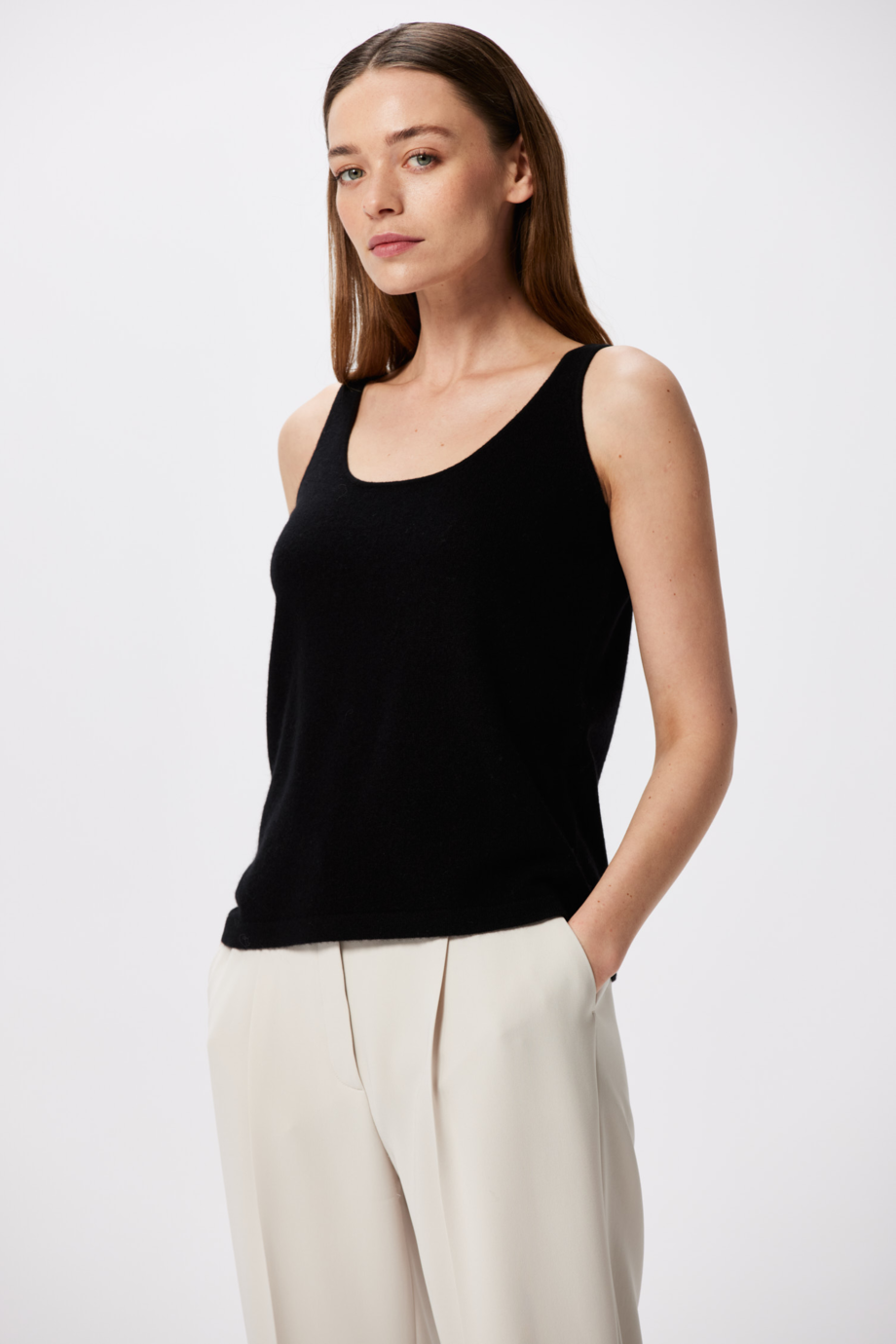 Černý top s kašmírem a merino vlnou