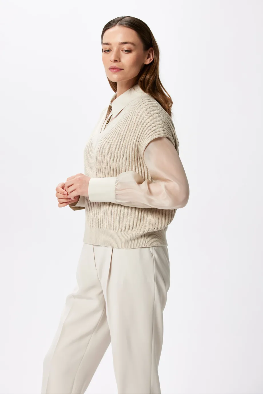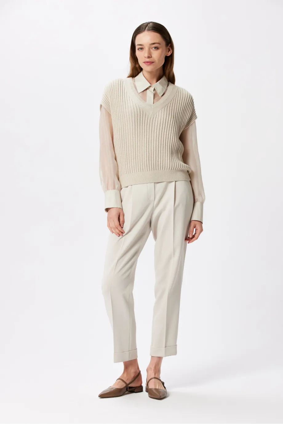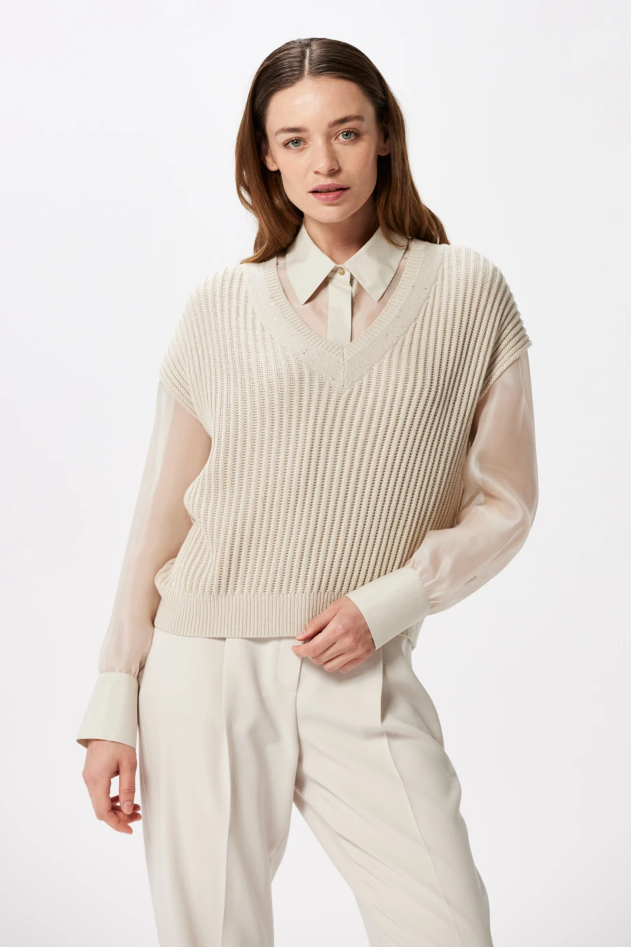 Modelka na fotografii má 177 cm výšku, nosí velikost 36/38.