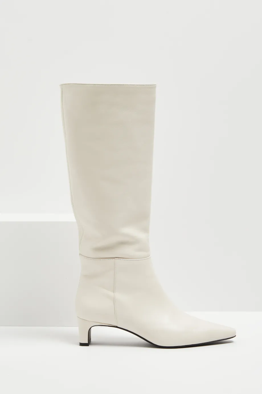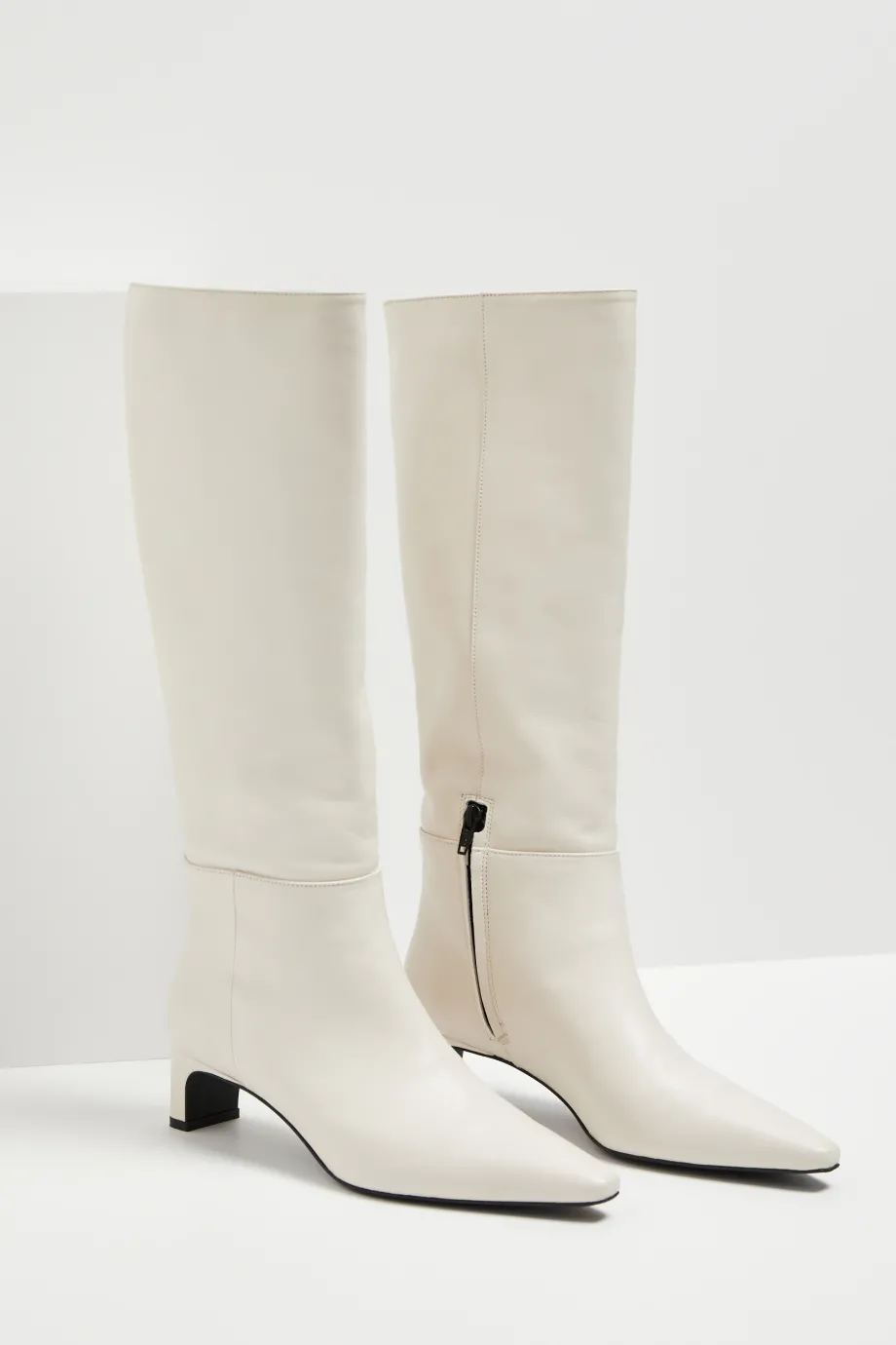 Bílé kozačky na středním podpatku
