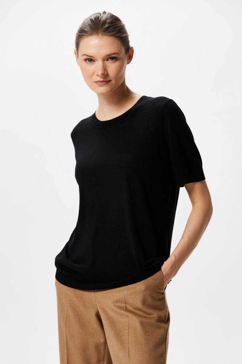 Modelka na fotografii má 177 cm výšku, nosí velikost 36/38.