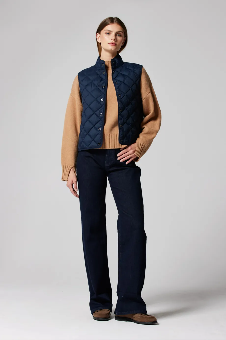 Modelka na fotografii má 177 cm výšku, nosí velikost 36/38.