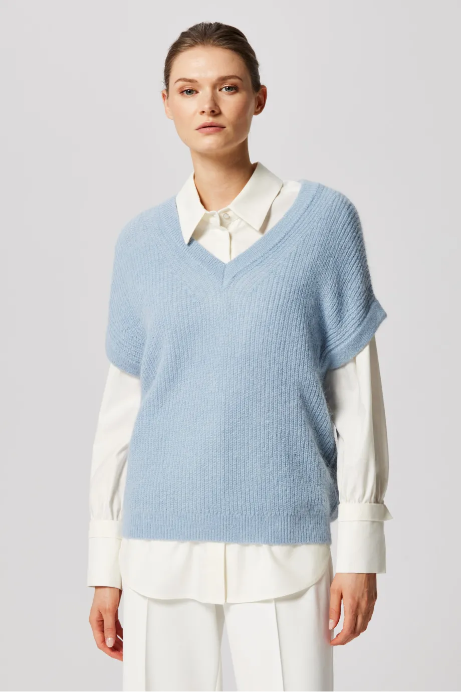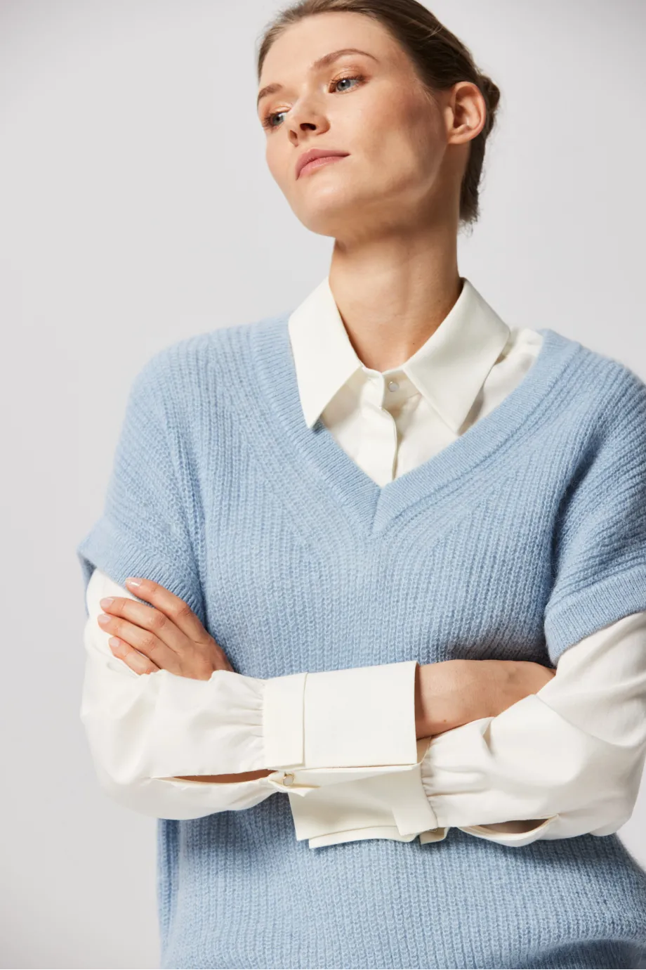 Modrá blůza s výstřihem do V