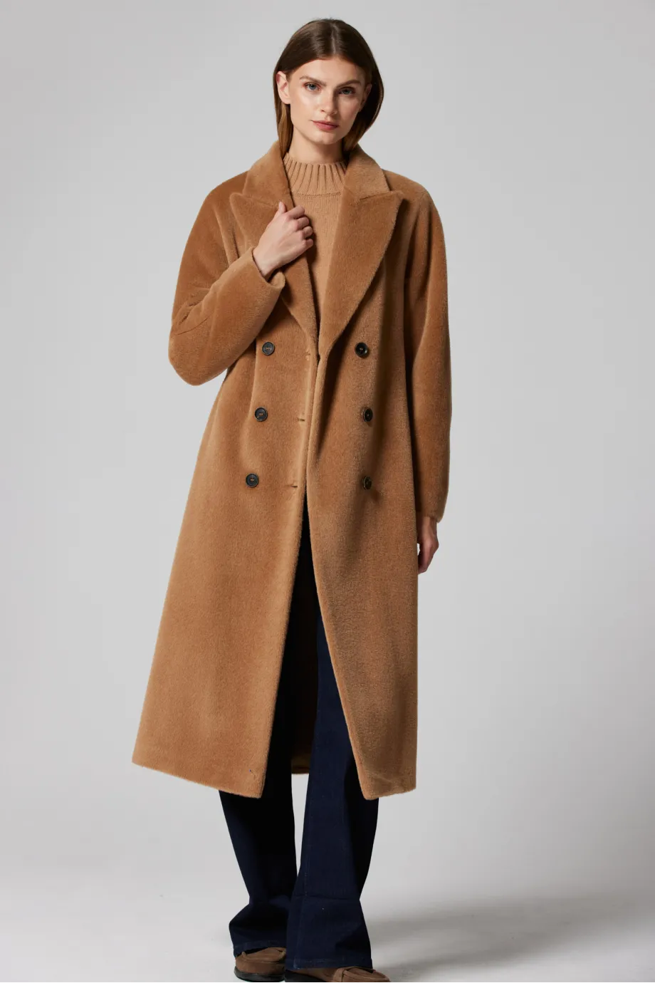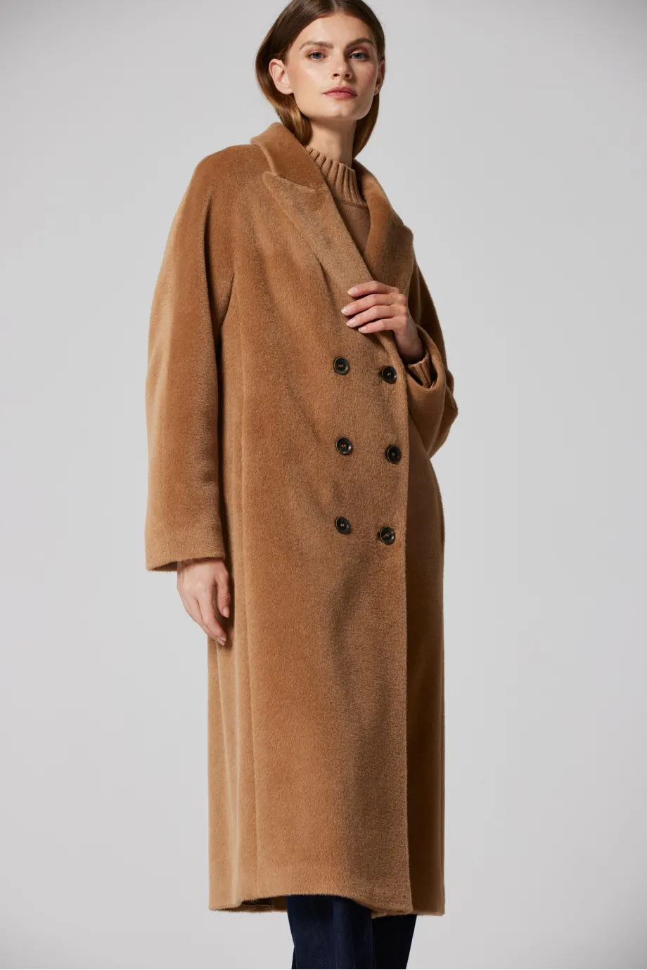 Camel dvouřadý kabát se suri alpaka