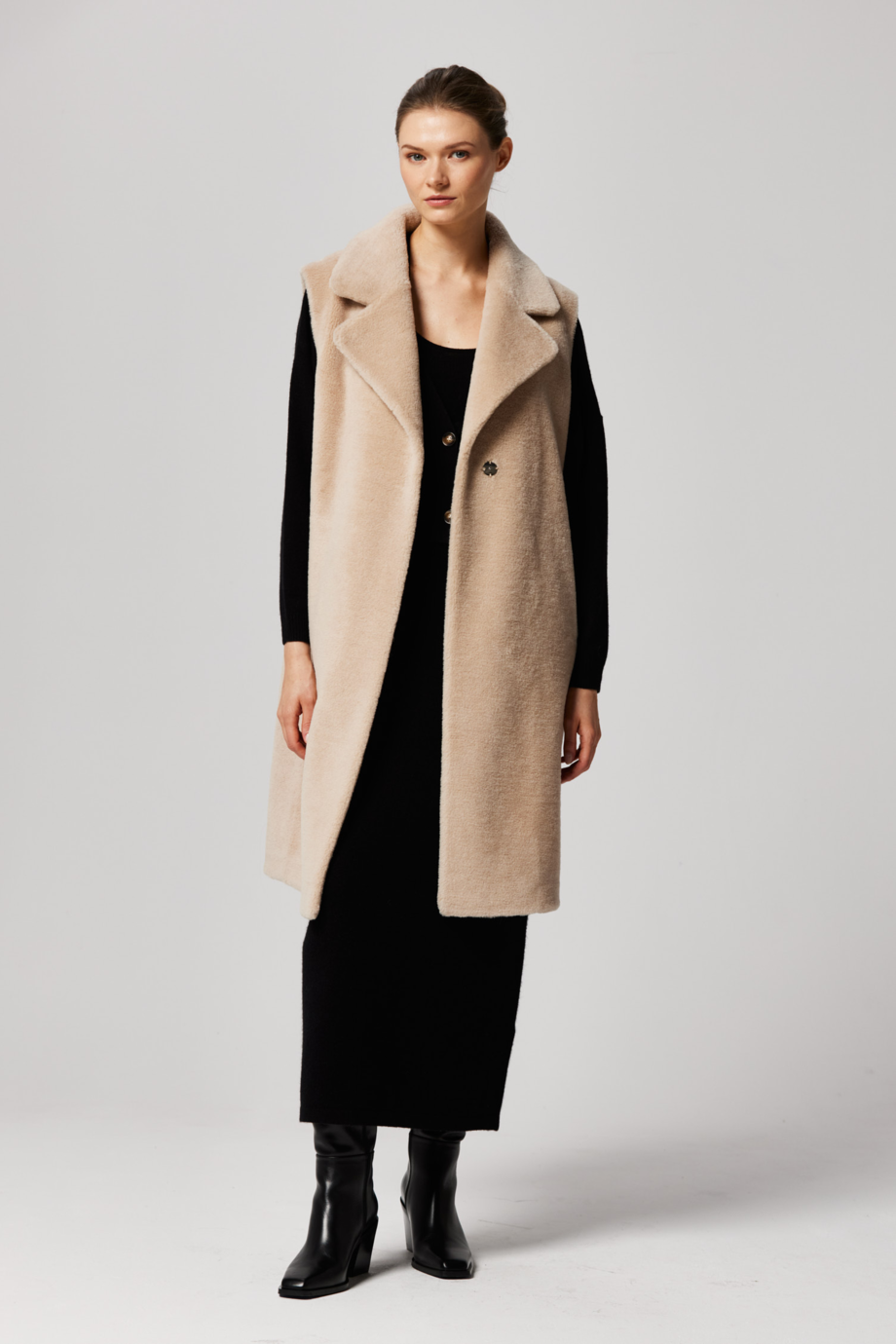 Dlouhá béžová vesta z teddy bear vlny