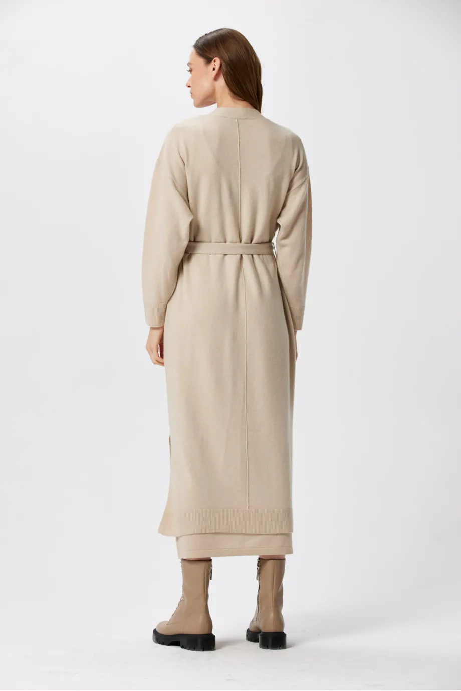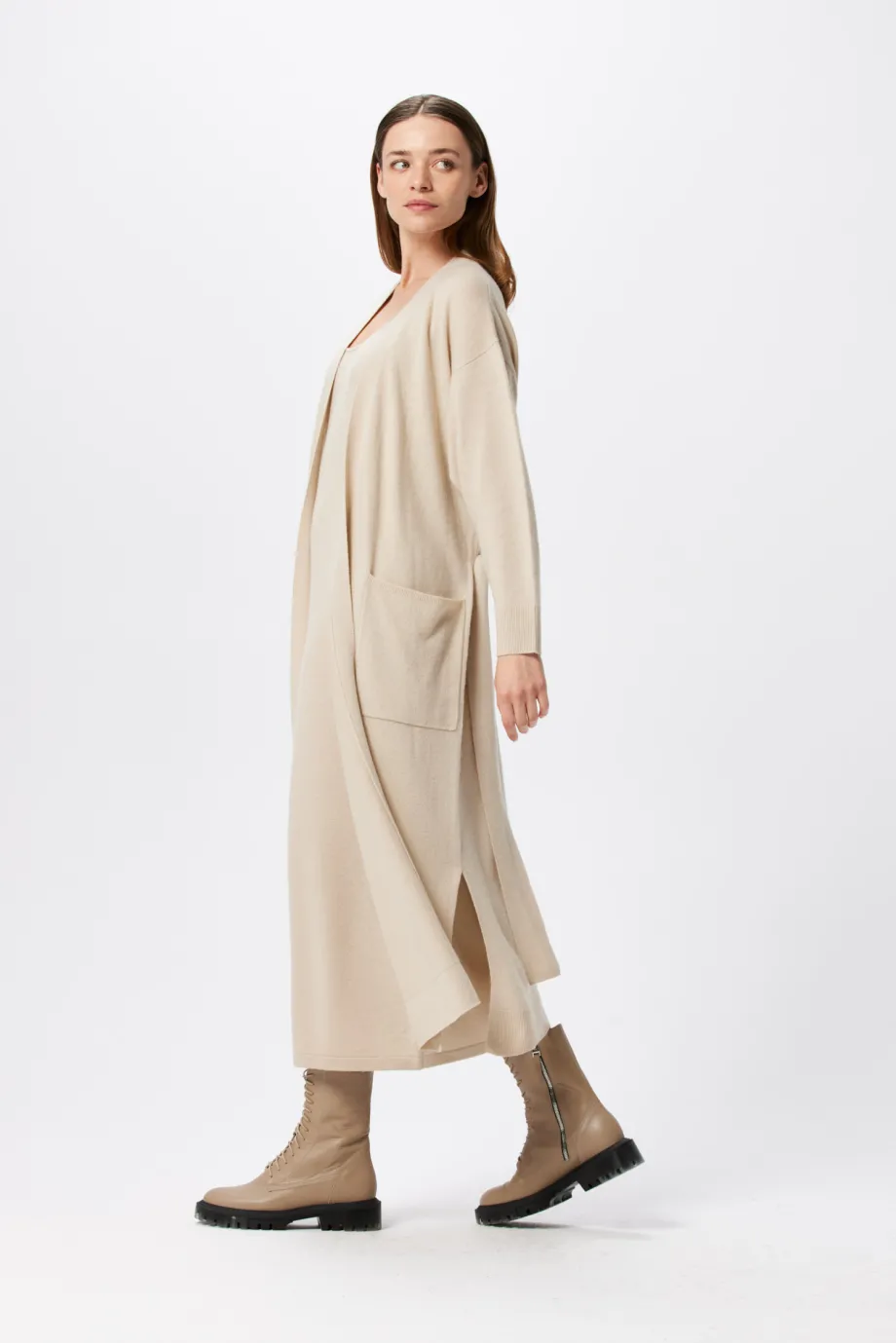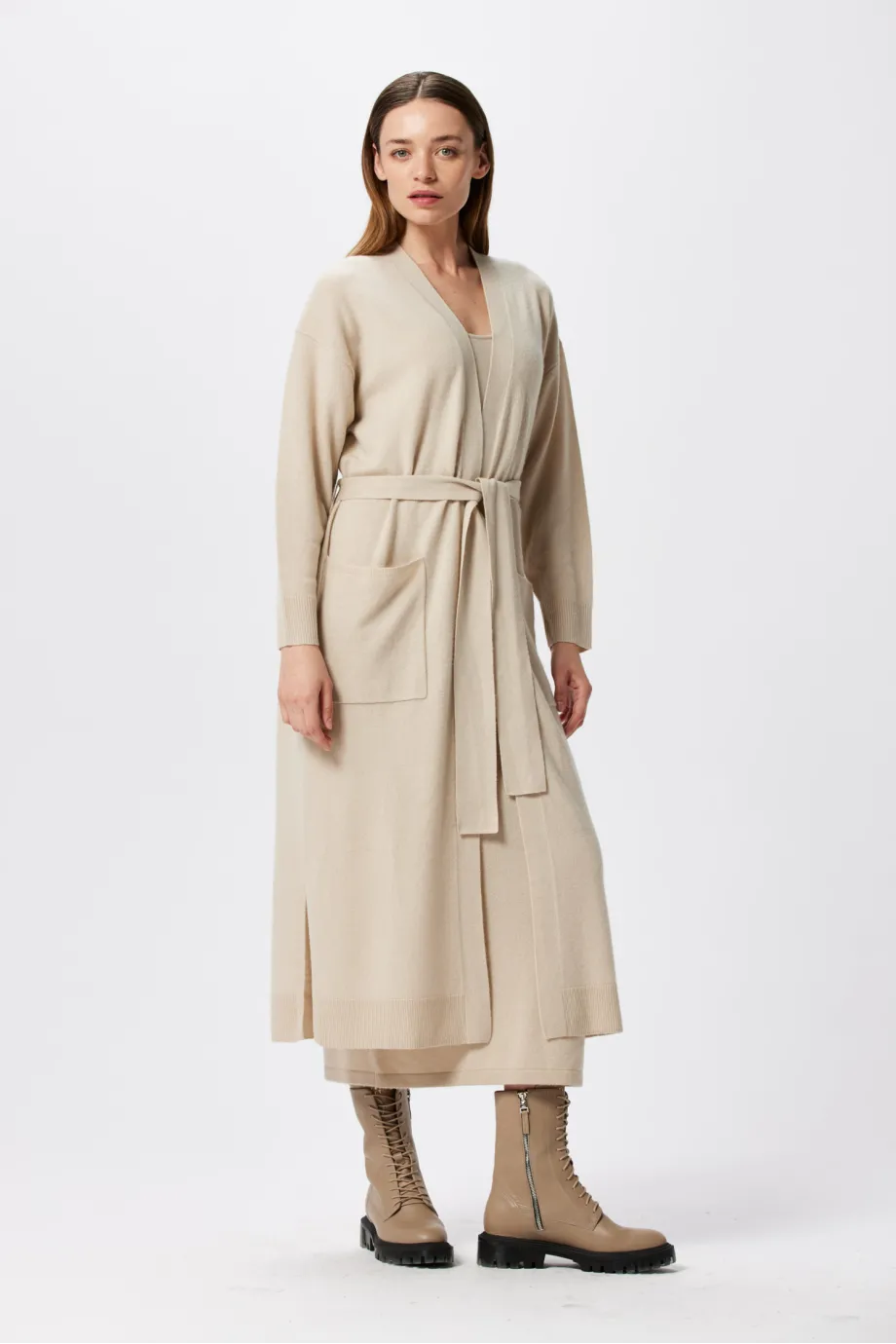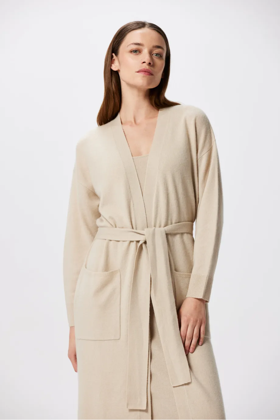 Dlouhý světlý kardigan z merino vlny koupíte ve čtyřech velikostech, od 32/34 do 44/46. V materiálu dominuje šetrná k pokožce, prodyšná a perfektně izolující před zimou merino vlna, která nezpůsobuje pocit svědění. Kašmír navíc zjemňuje pleteninu, dodává jí velmi diskrétní lesk a hladkost.