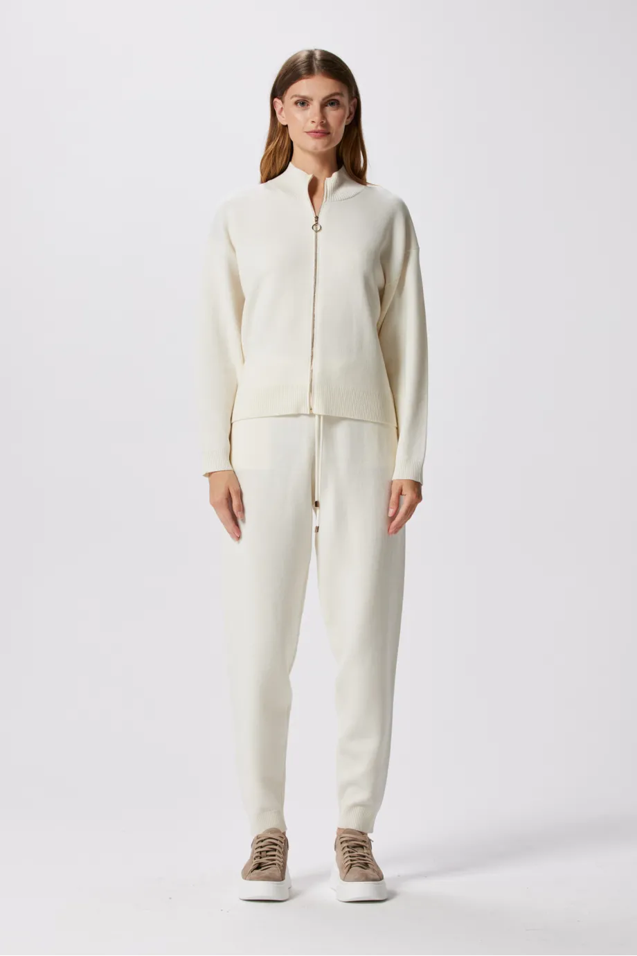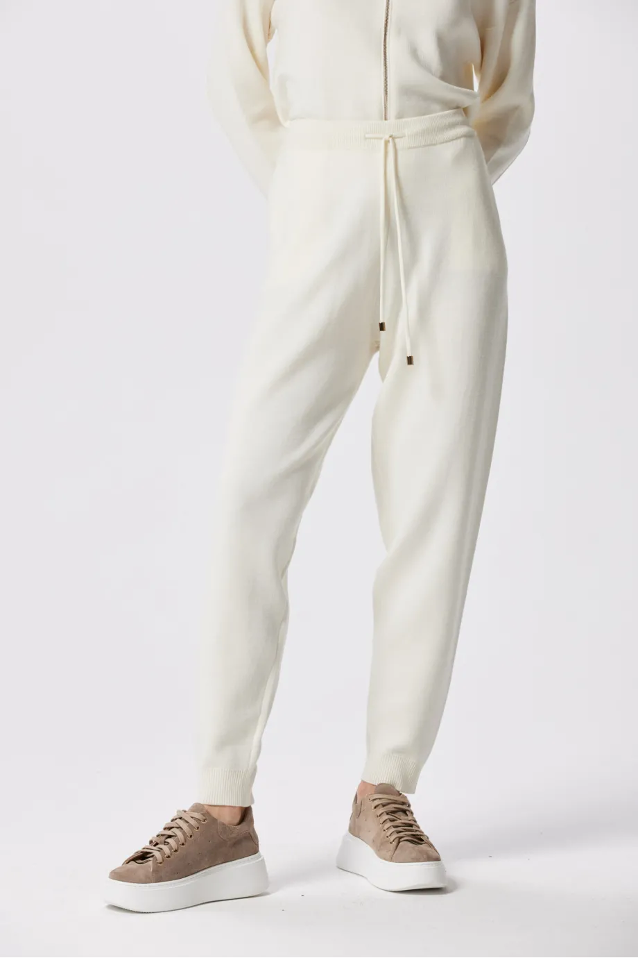 Nohavice mírně zužující se dolů, zakončené elastickým lemem