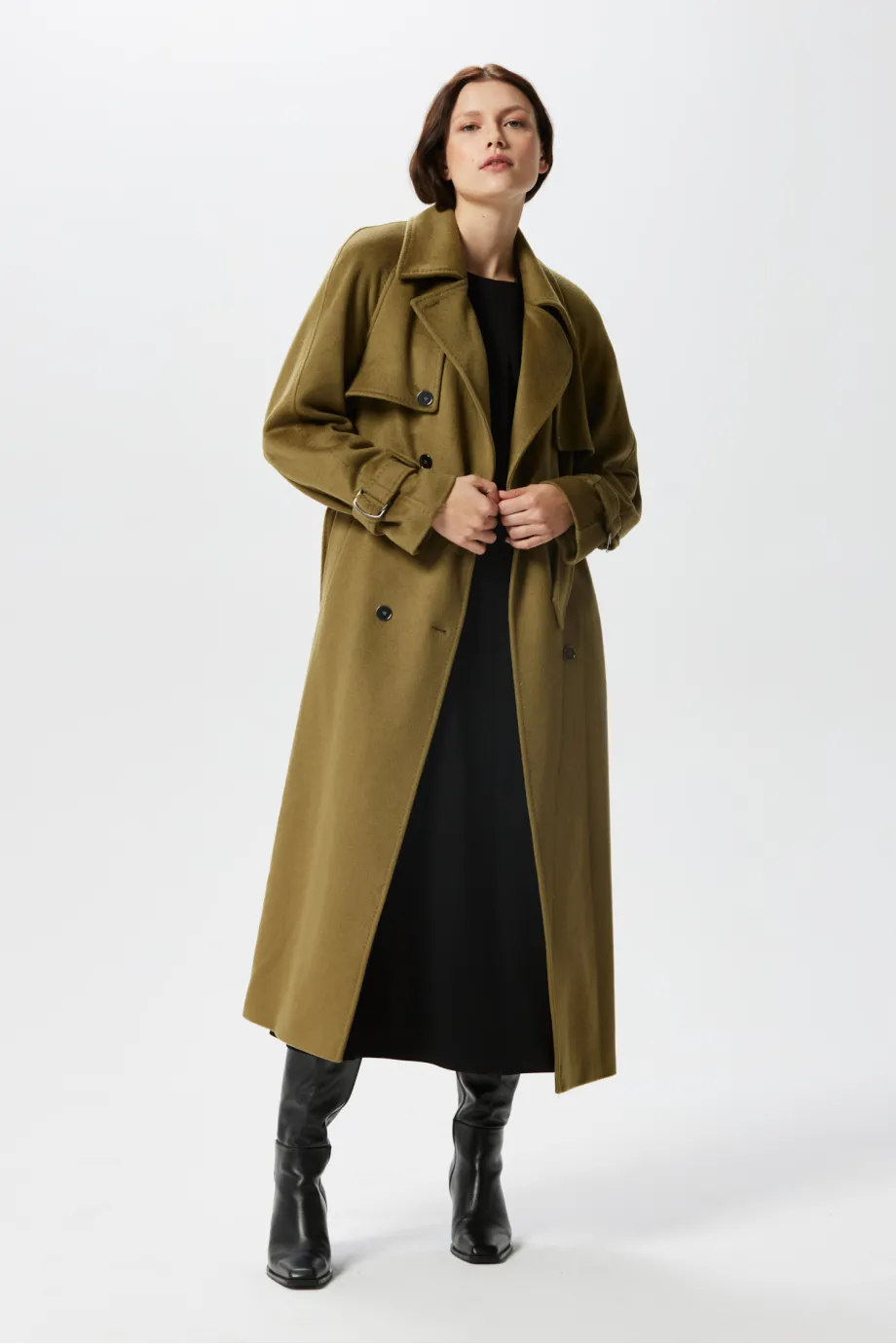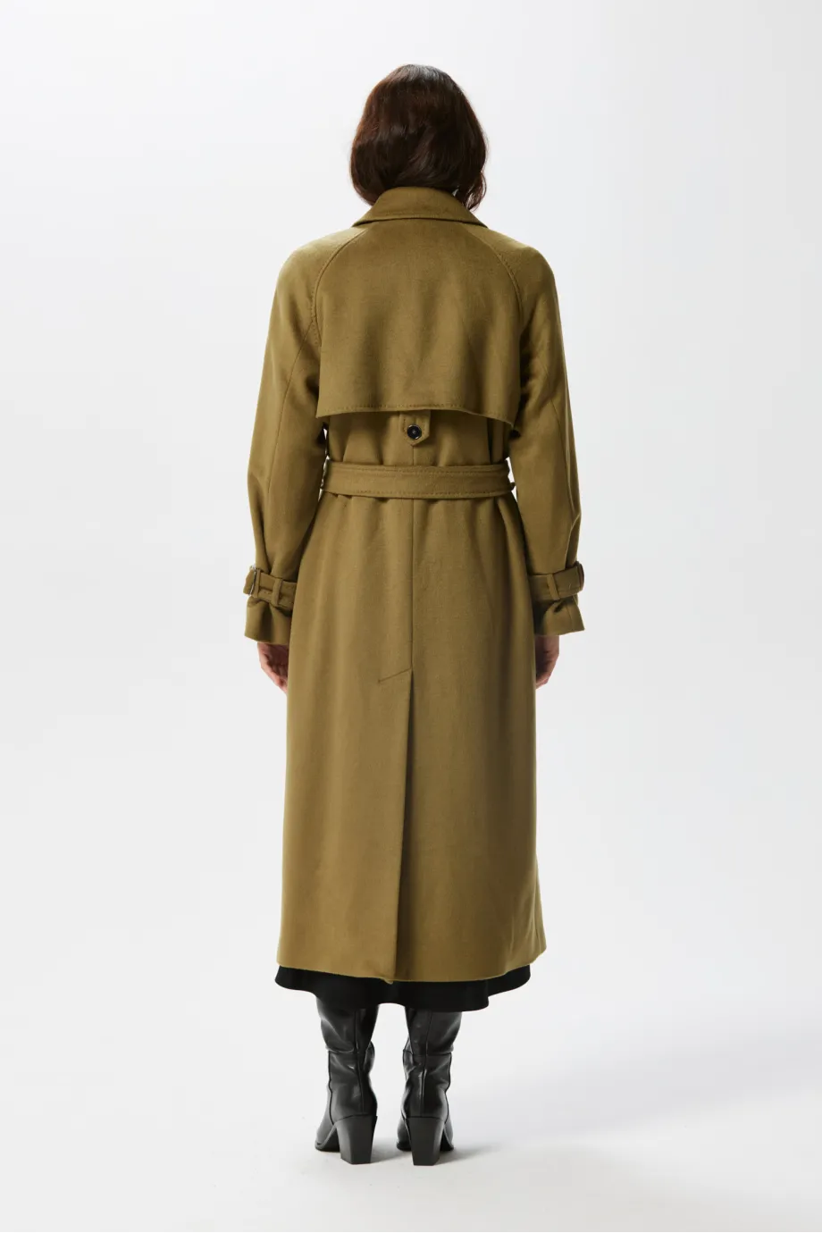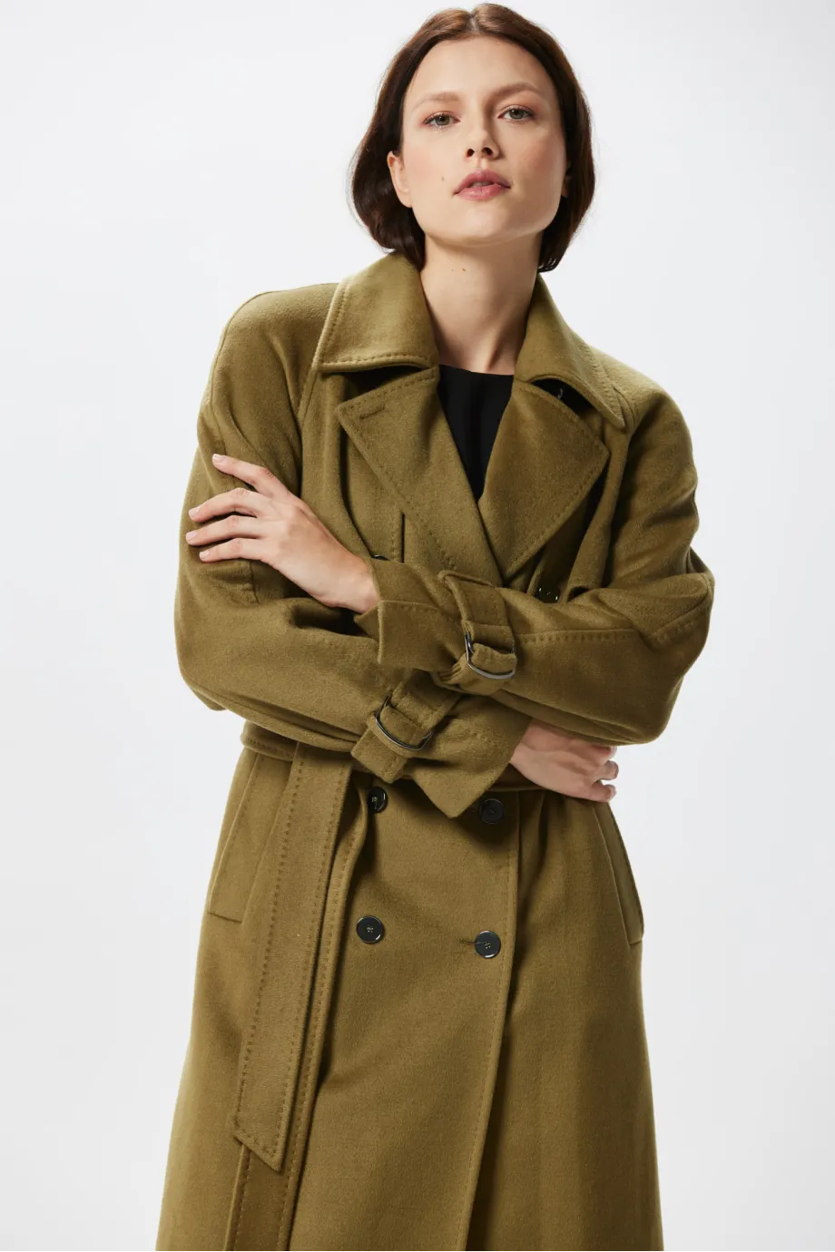 Zelený vlněný trenčkot se hedvábím a kašmírem