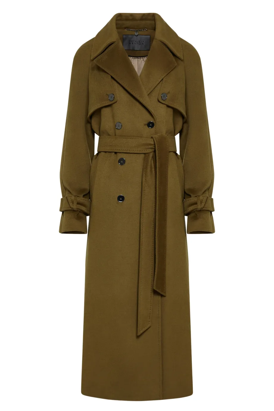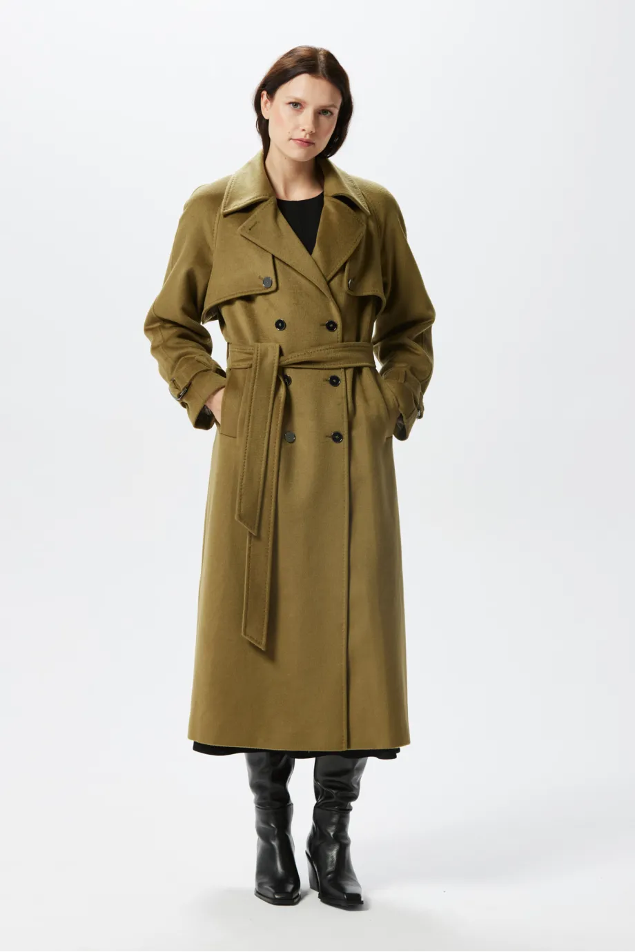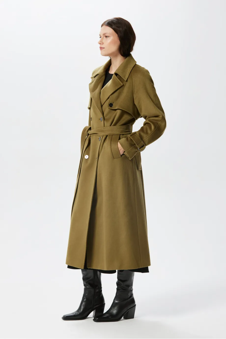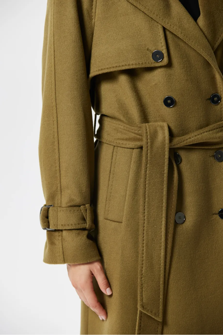 Zelený vlněný trenčkot se hedvábím a kašmírem