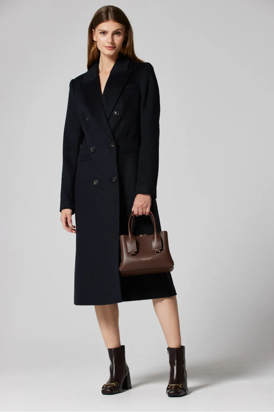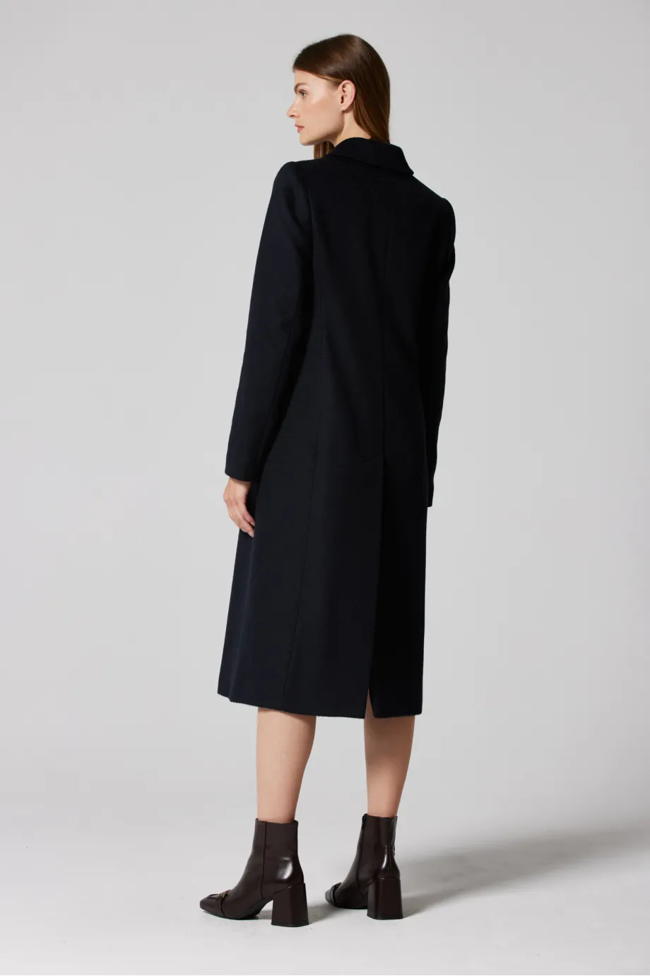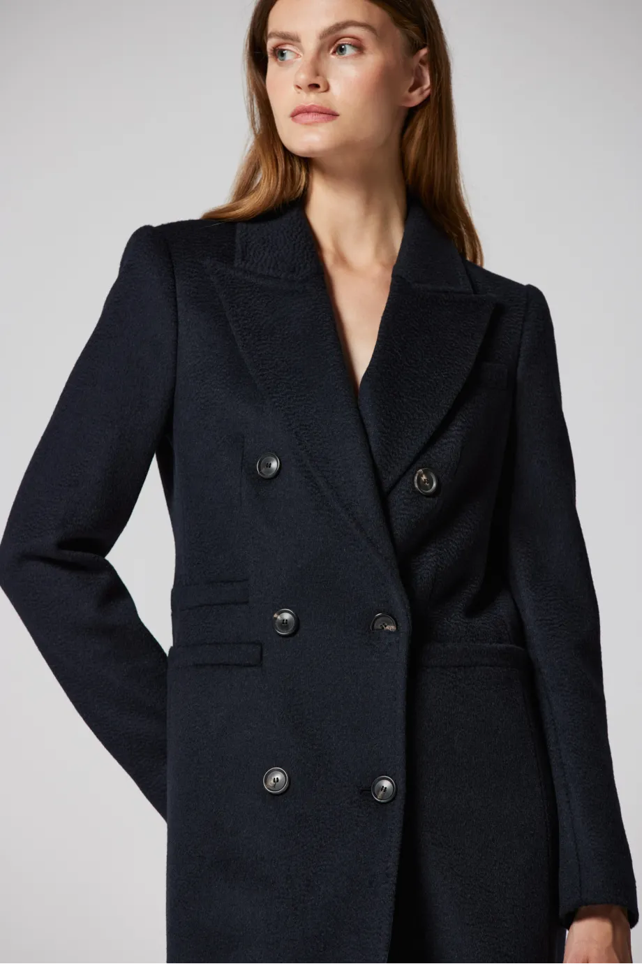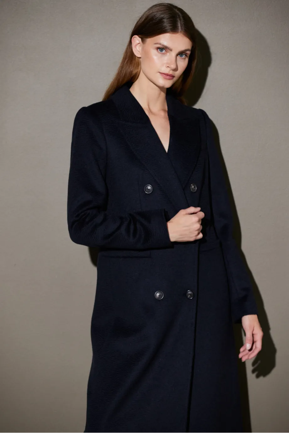 Tmavě modrý kabát z velbloudí vlny