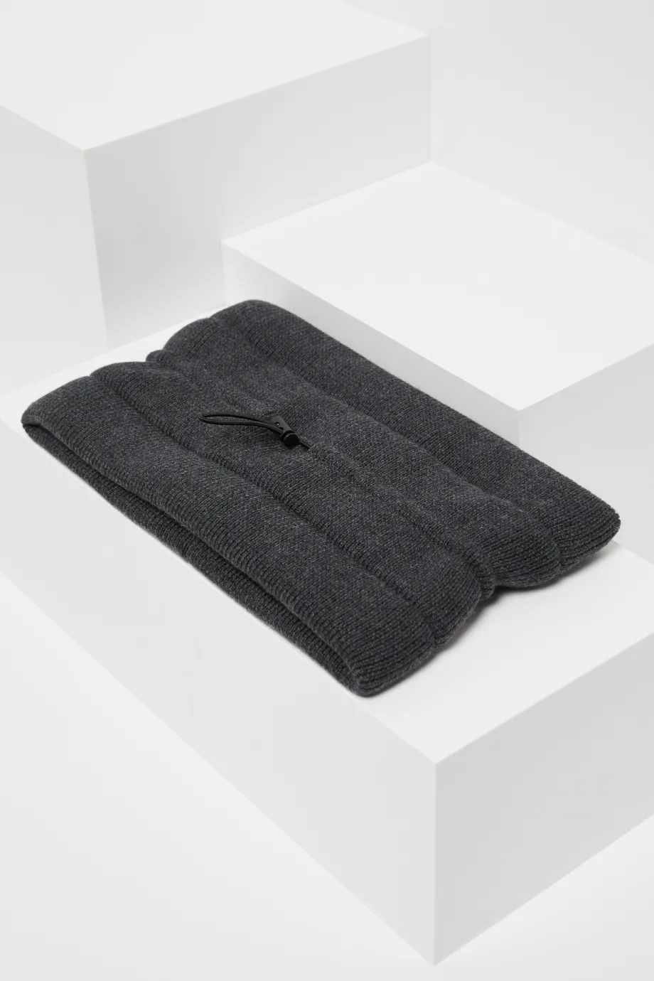Popelavý merino nákrčník Patrizia Aryton byl vyroben z měkké pleteniny vzniklé na stroji s uiglením 12 GG. Materiál má jemný a hustý úplet english rib, proto dobře izoluje proti chladu a větru. Produkt má horizontální švy a uvnitř je provlečen gumový provázek, sloužící k regulaci šířky pro co nejlepší přizpůsobení.