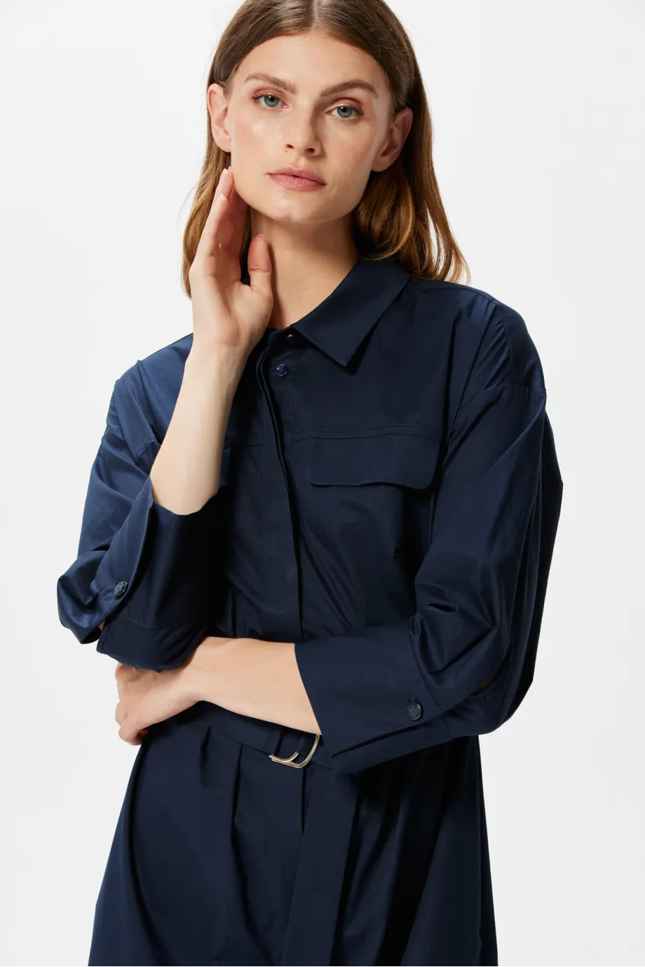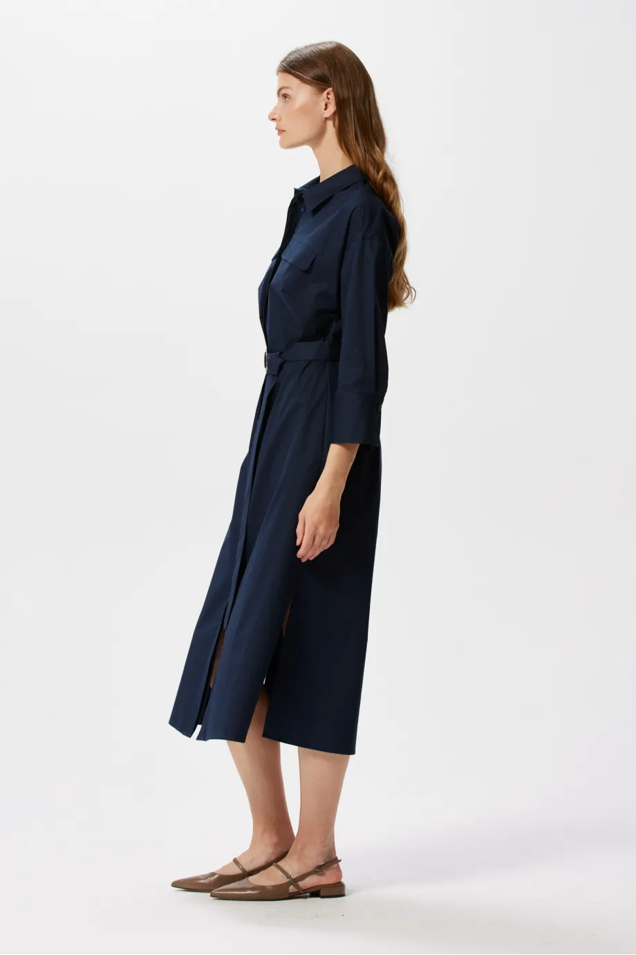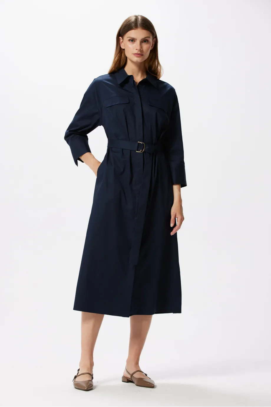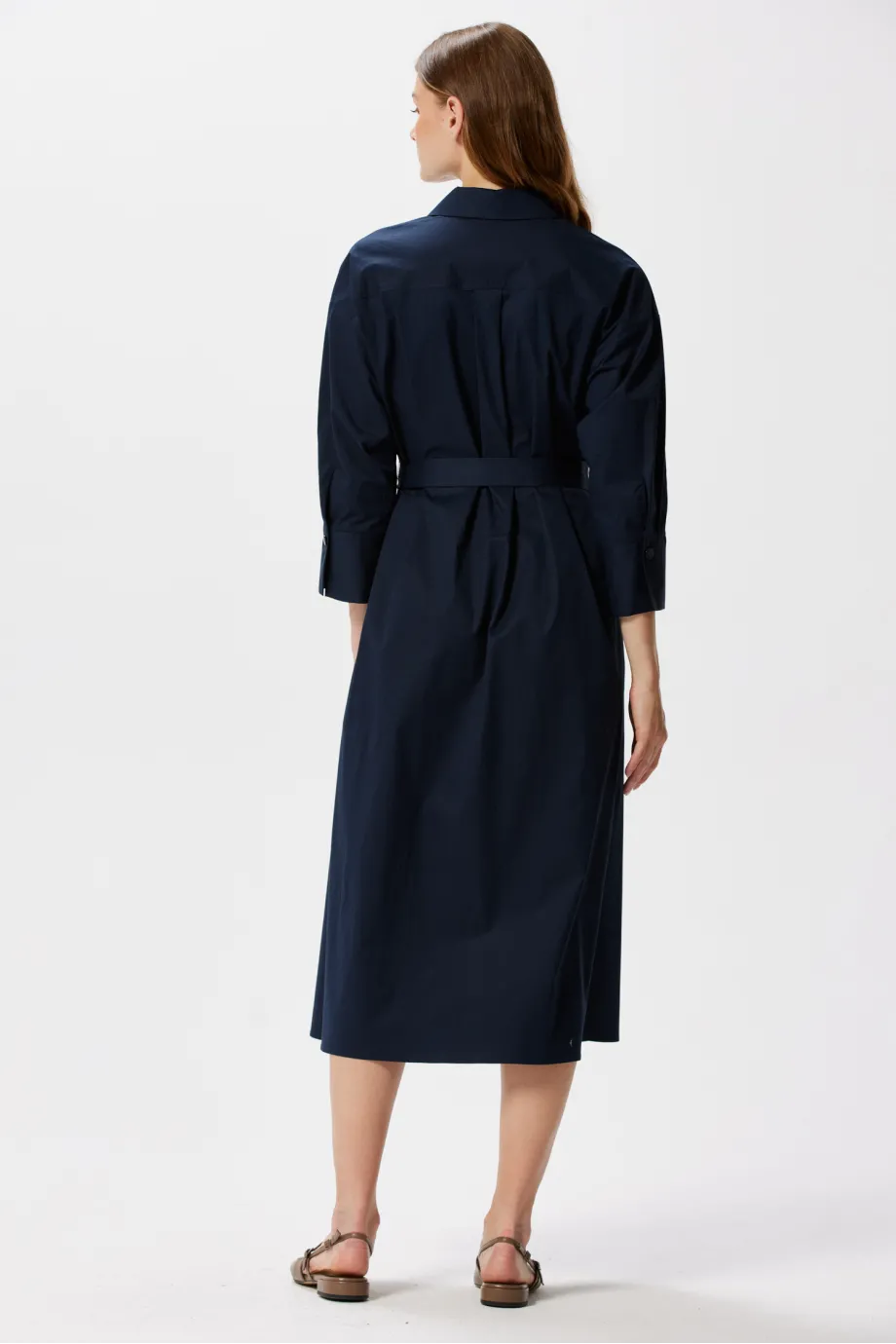 Tmavě modrá košilová šaty s páskem