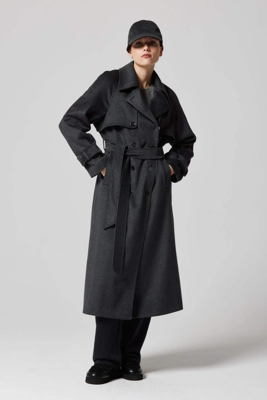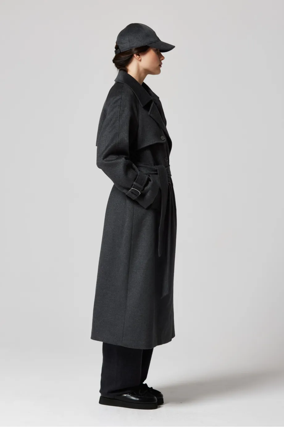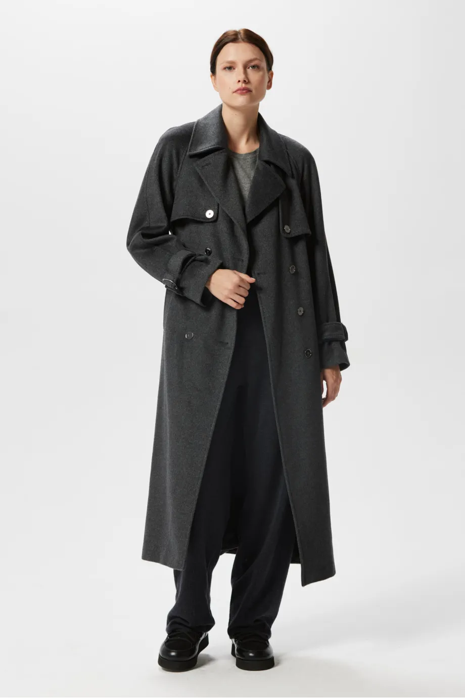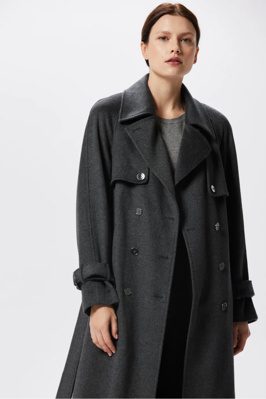 Šedý vlněný trenčkot se hedvábím a kašmírem