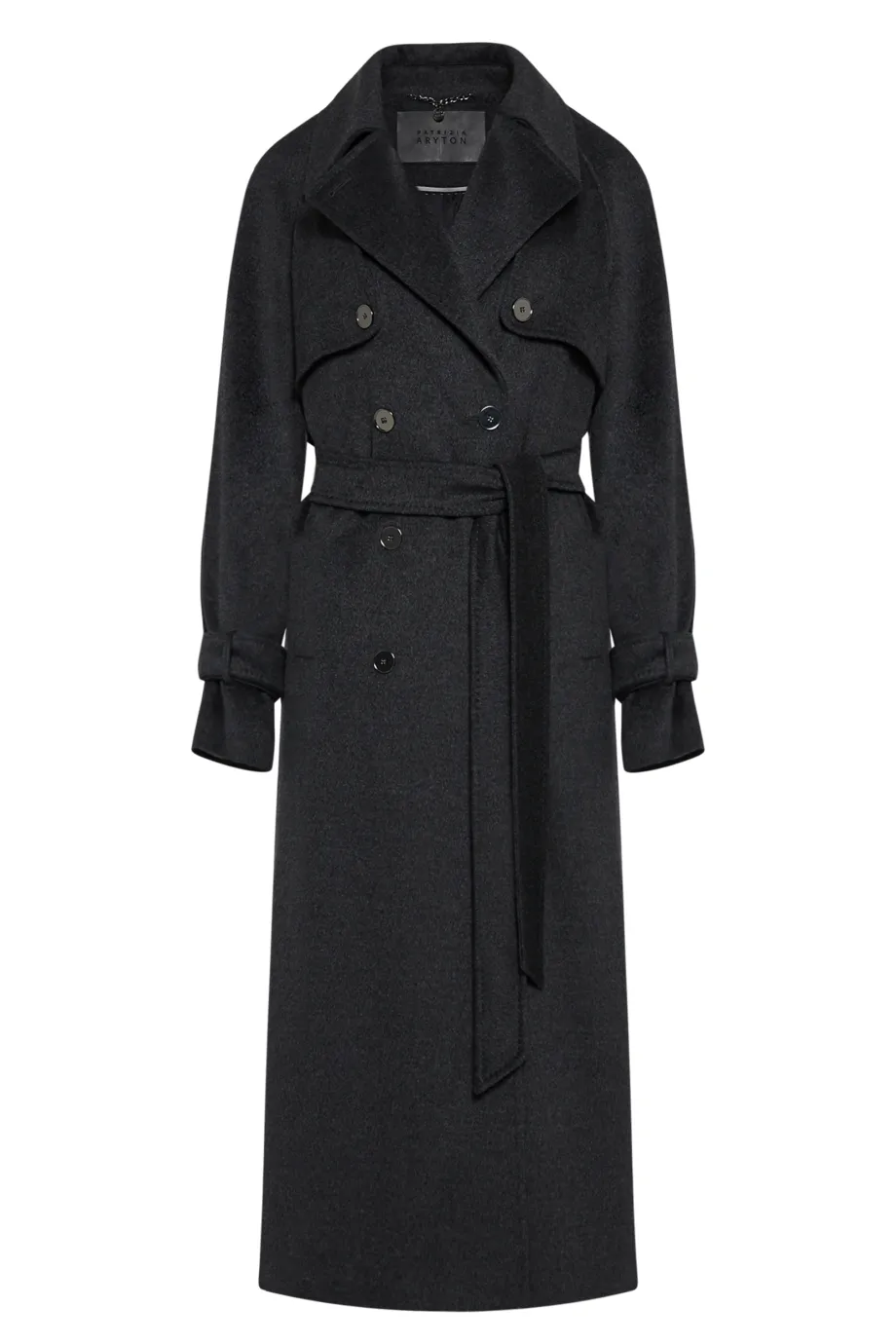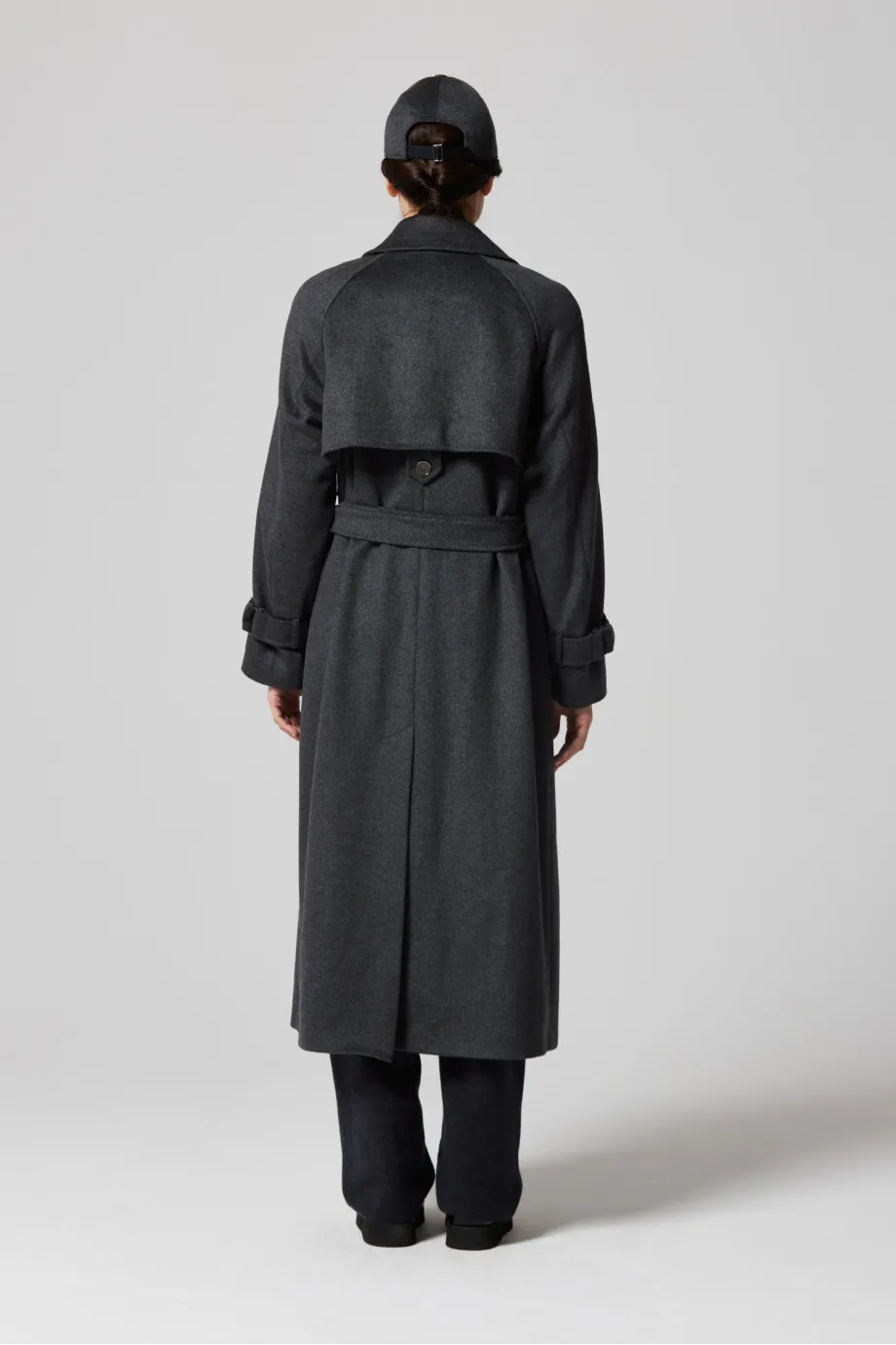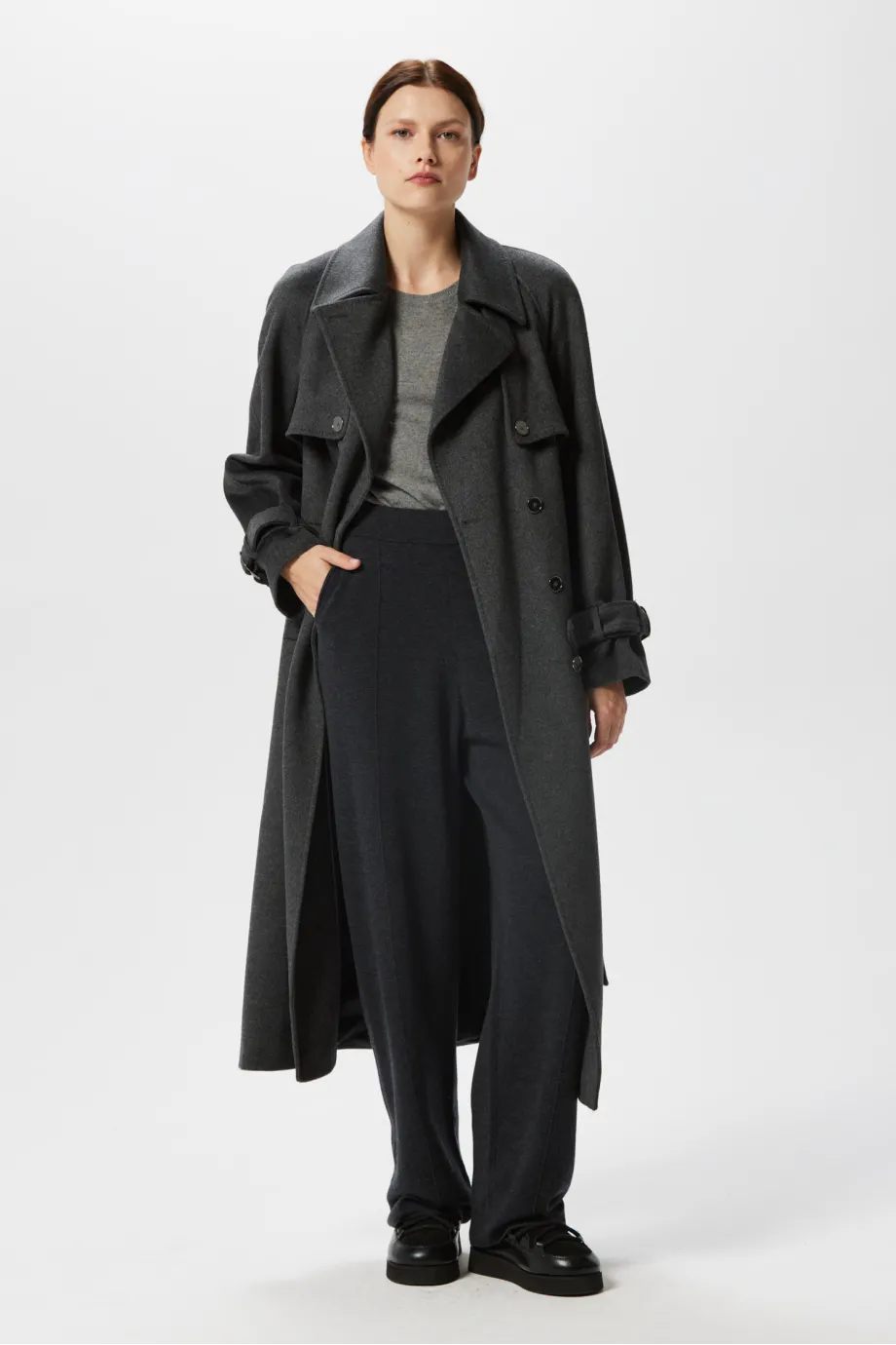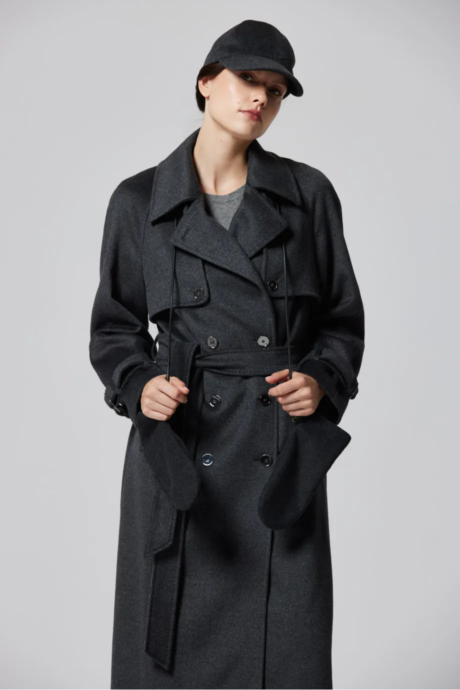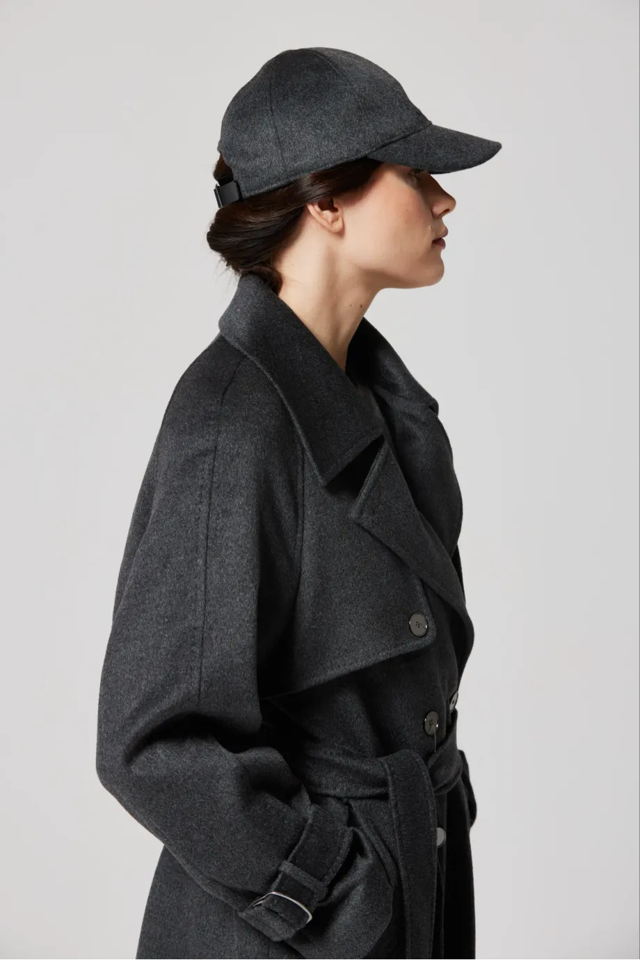 Šedý vlněný trenčkot se hedvábím a kašmírem