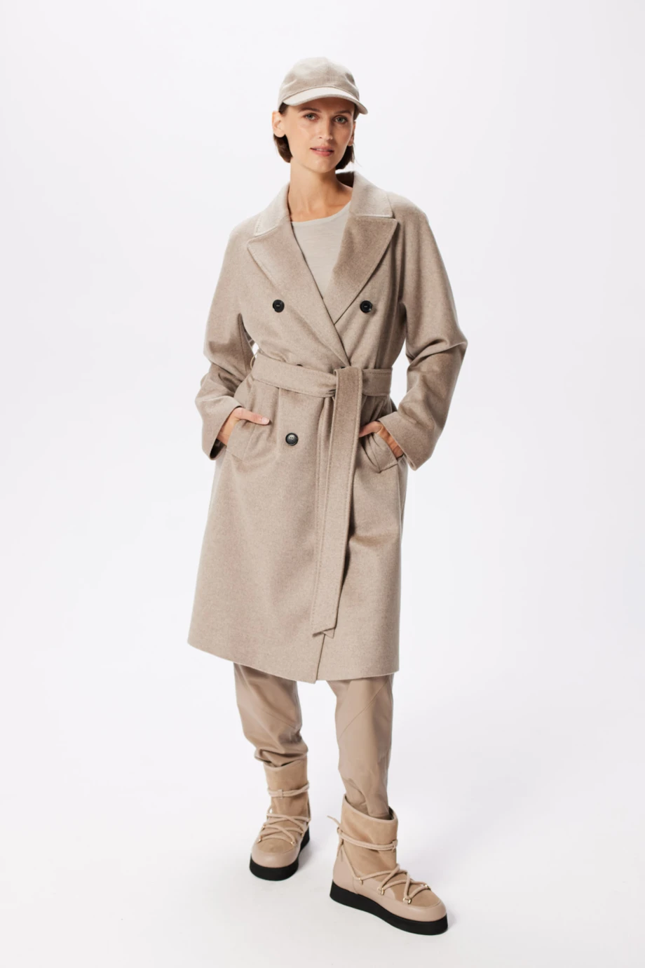 Béžový vlněný kabát s páskem