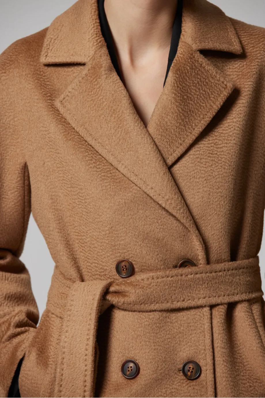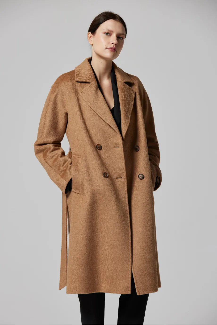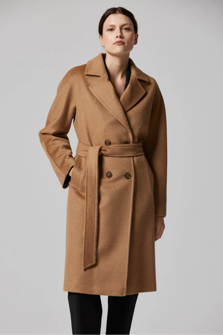Vlněný dvouřadový kabát s páskem