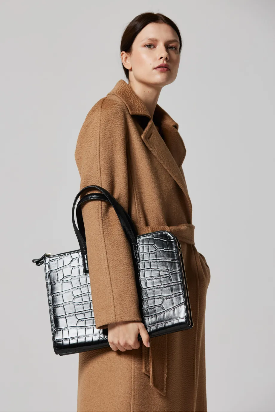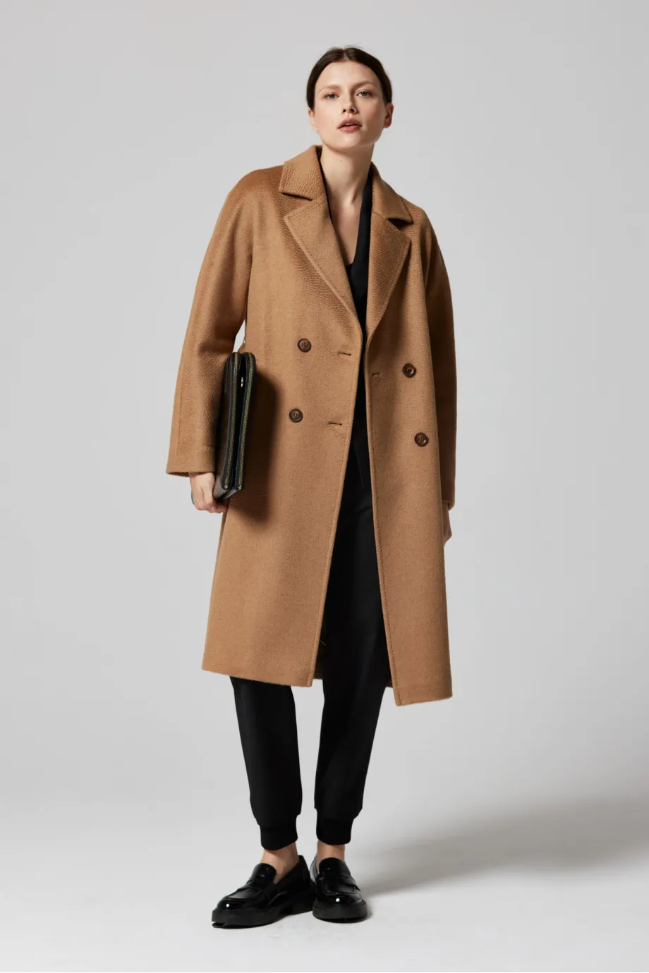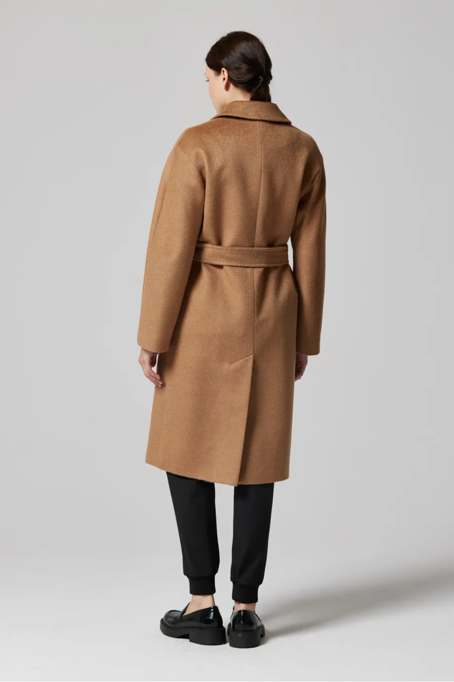Vlněný dvouřadový kabát s páskem