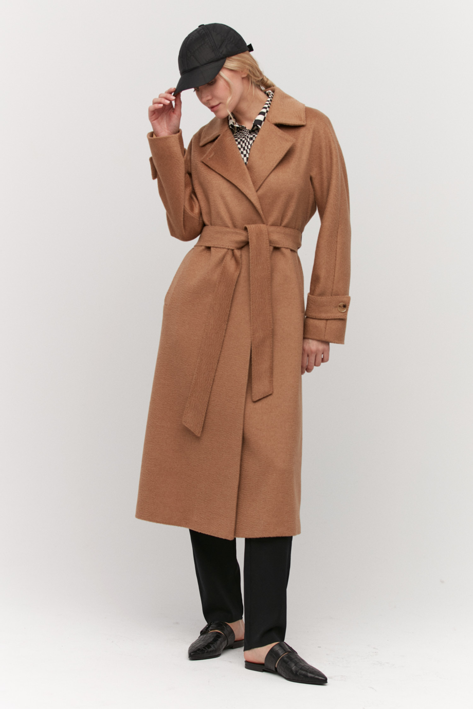 Velbloudí kabát z velbloudí vlny s páskem