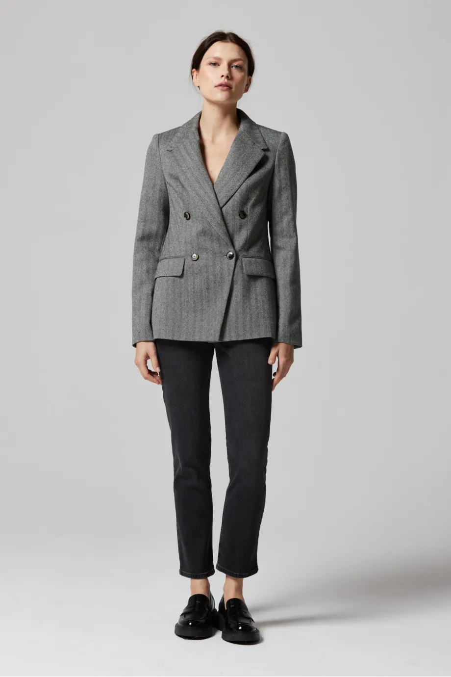 dvouřadý blejzr s dlouhým rukávem a zapínáním pod krkem