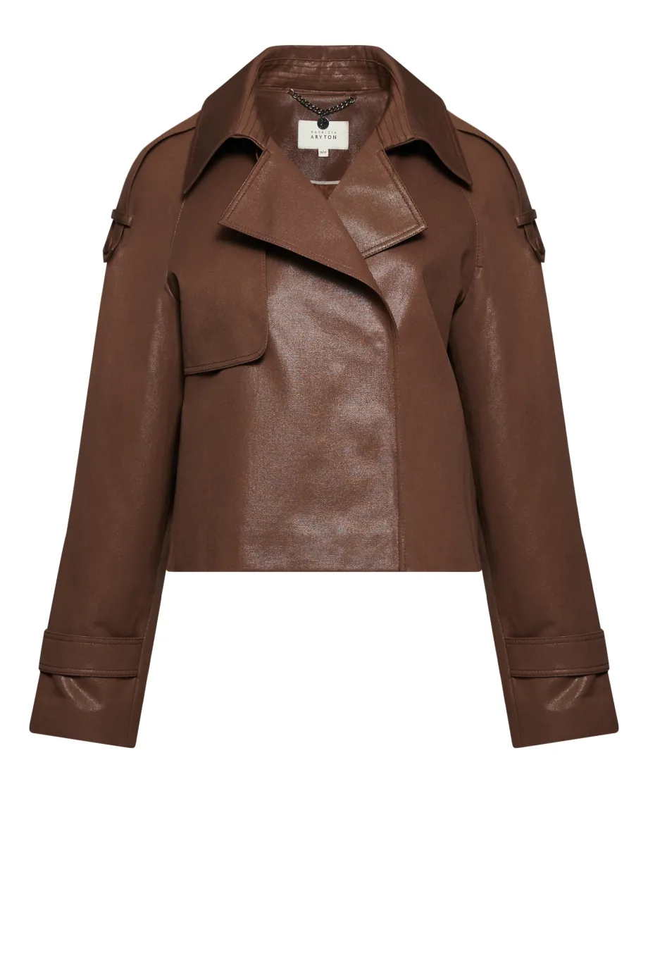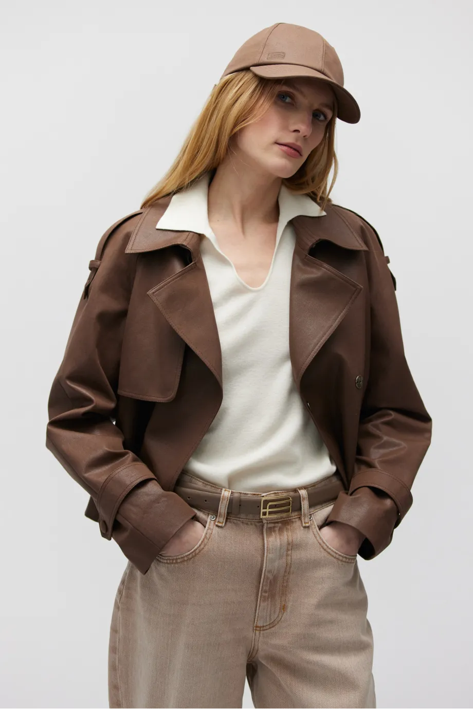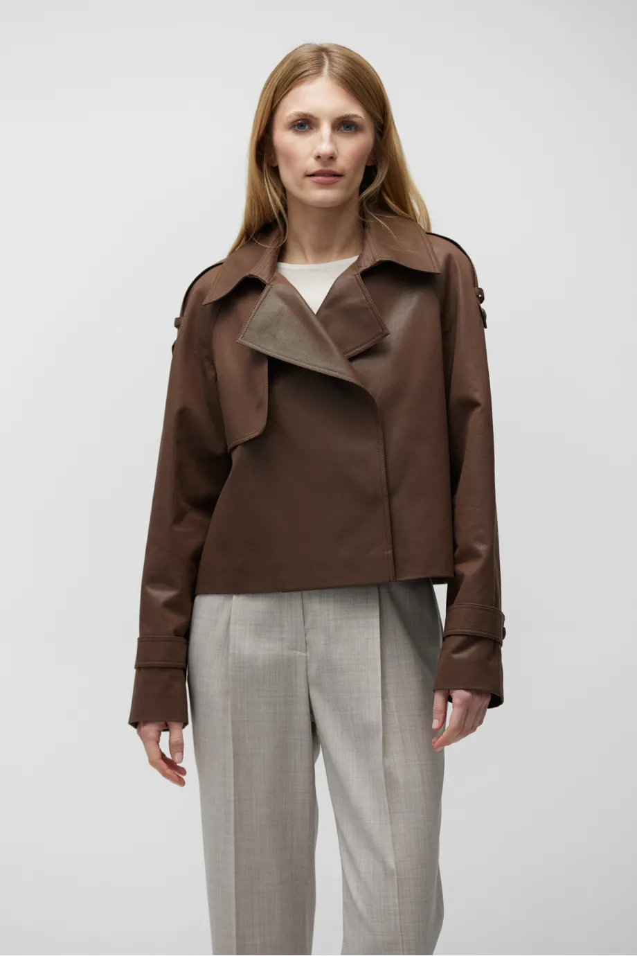 Má epolety na ramenou, patky na rukávech a zapínání na cvočky.