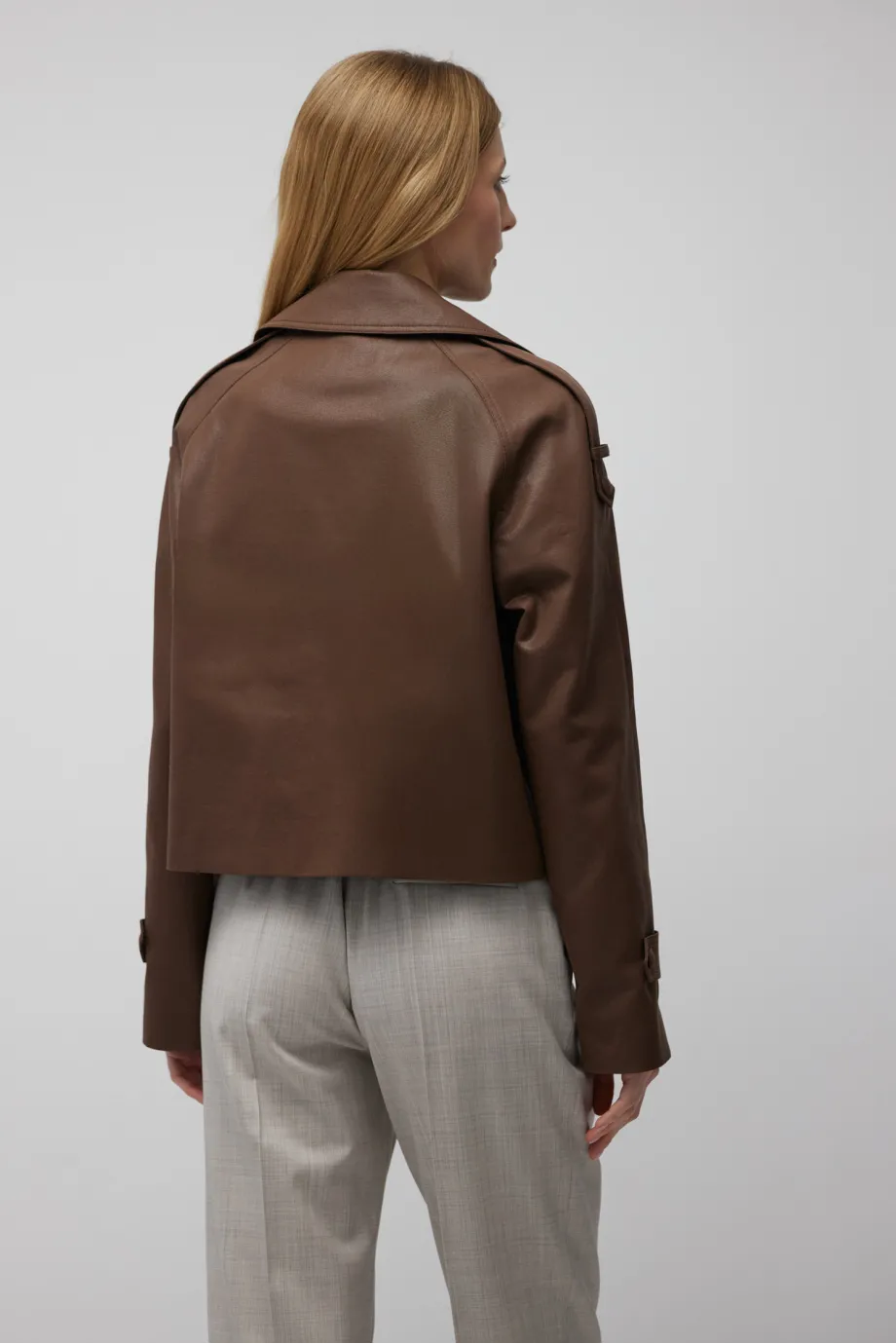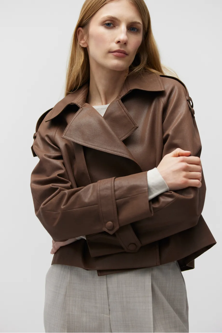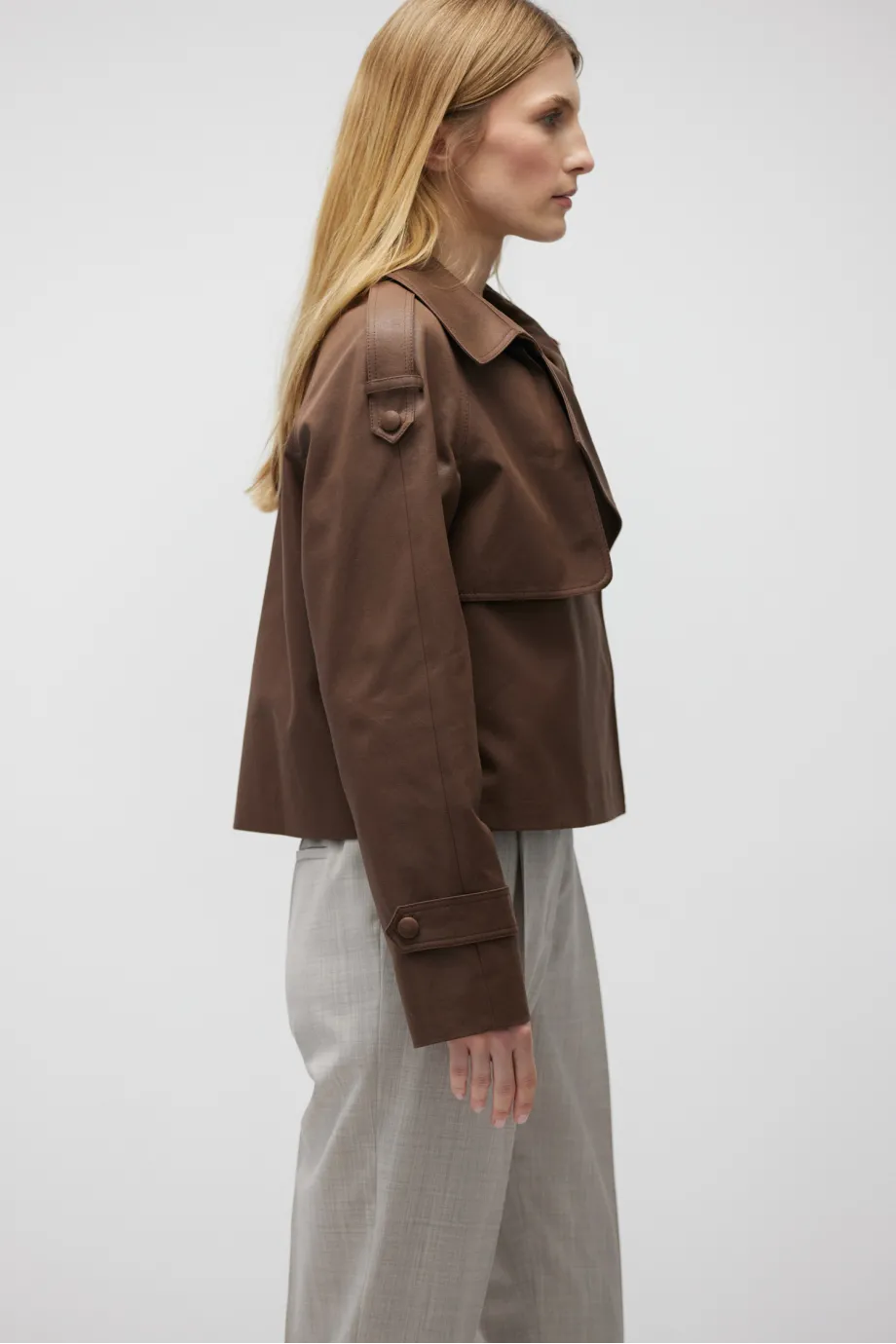 Má epolety na ramenou, patky na rukávech a zapínání na cvočky.