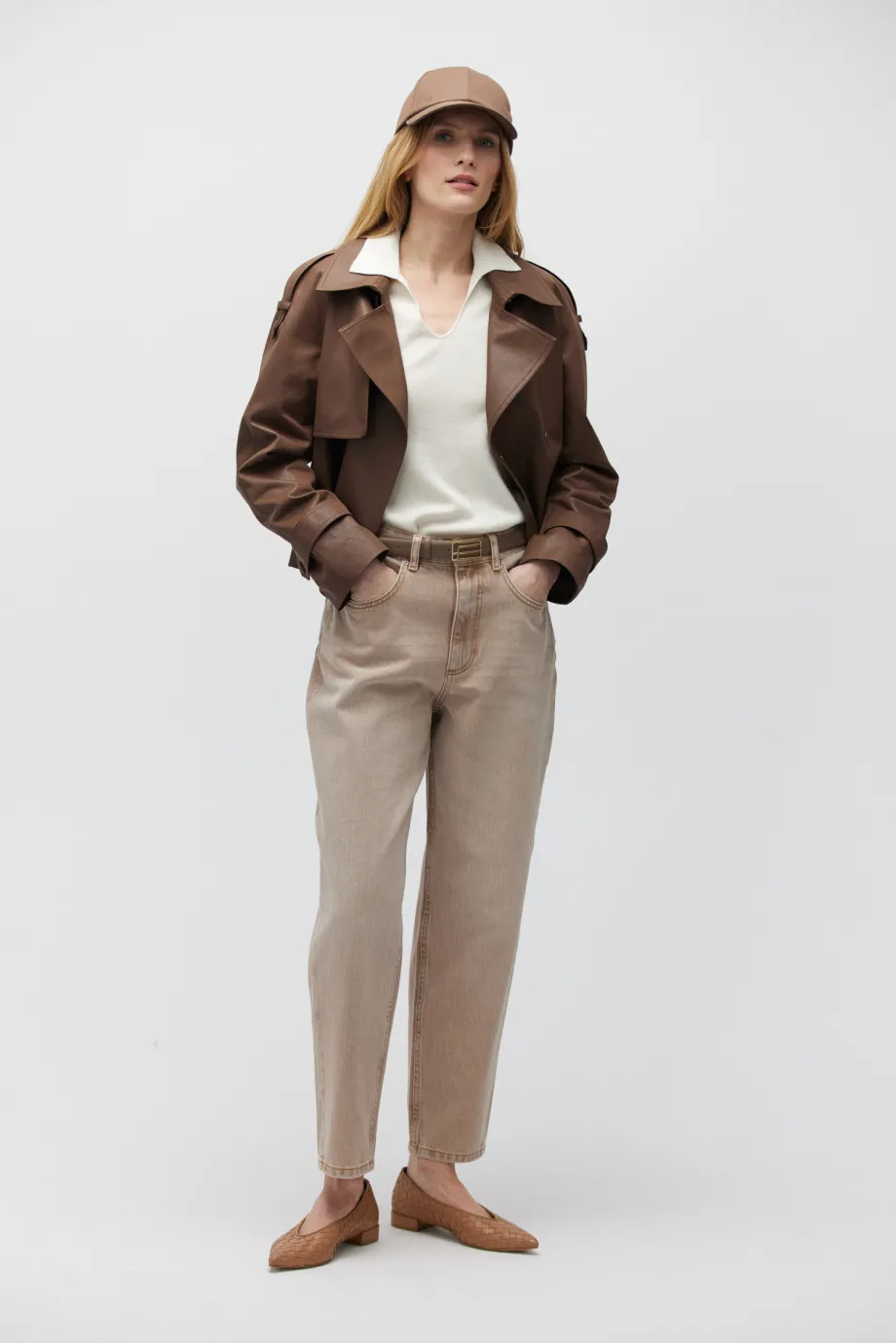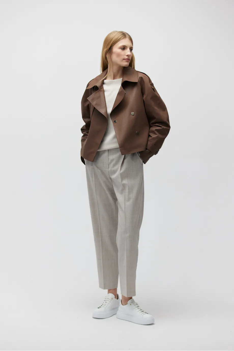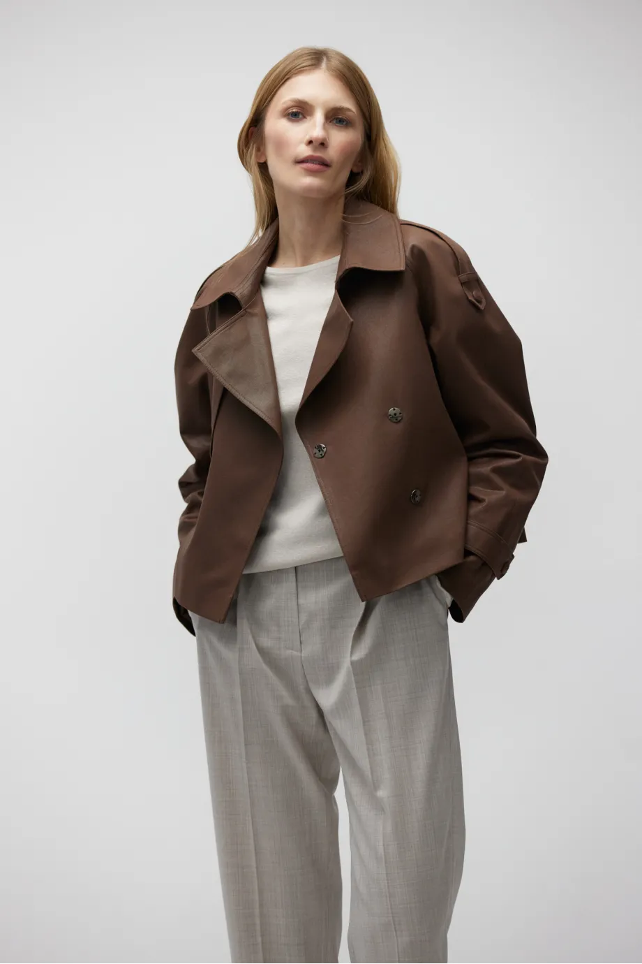 Model s podšívkou a kapsami, s jednoduchým, volným střihem.