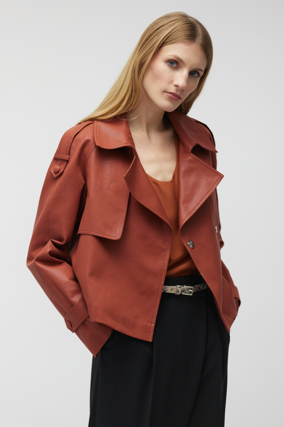 Model má epolety na ramenou, patky na rukávech a zapínání na cvočky.