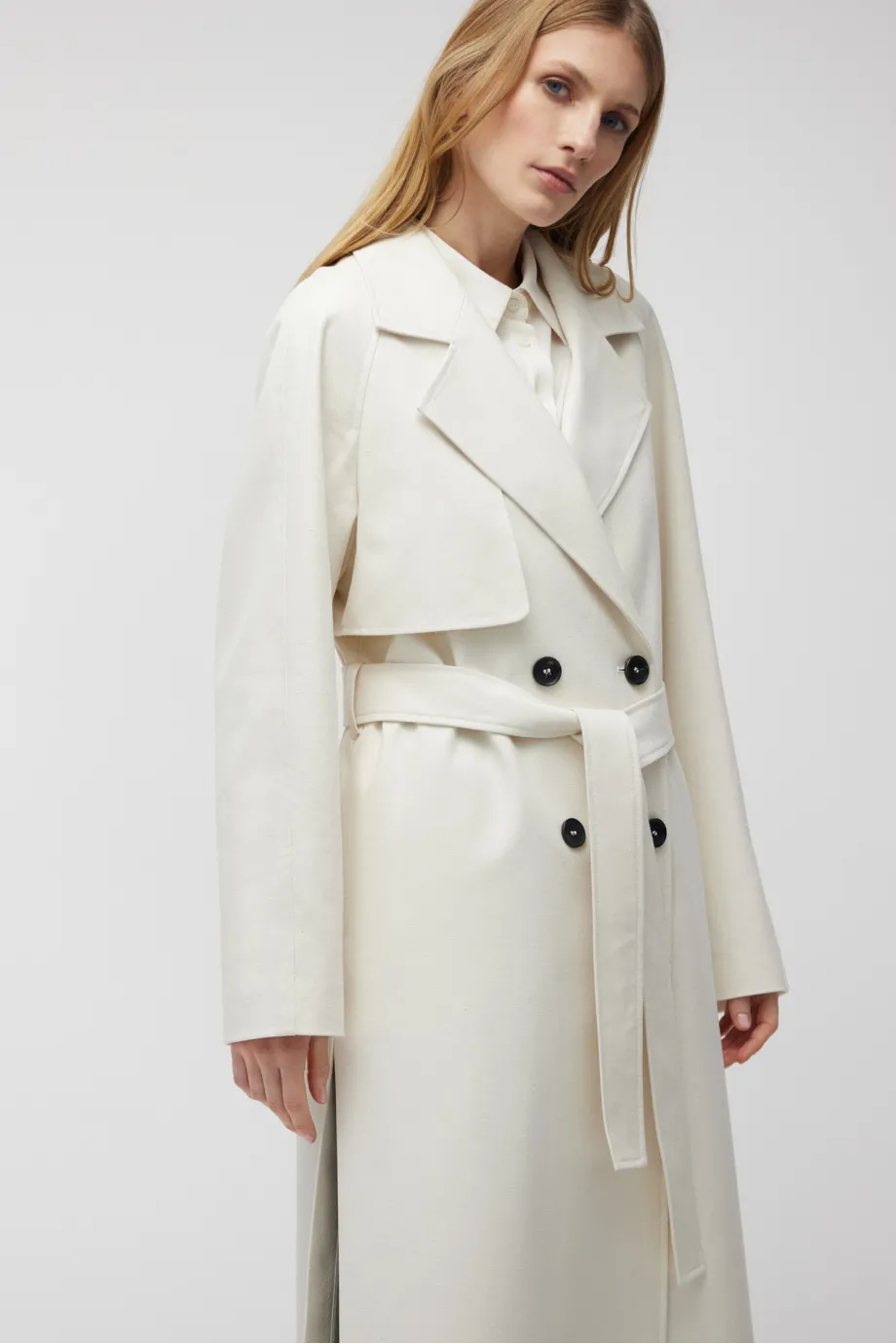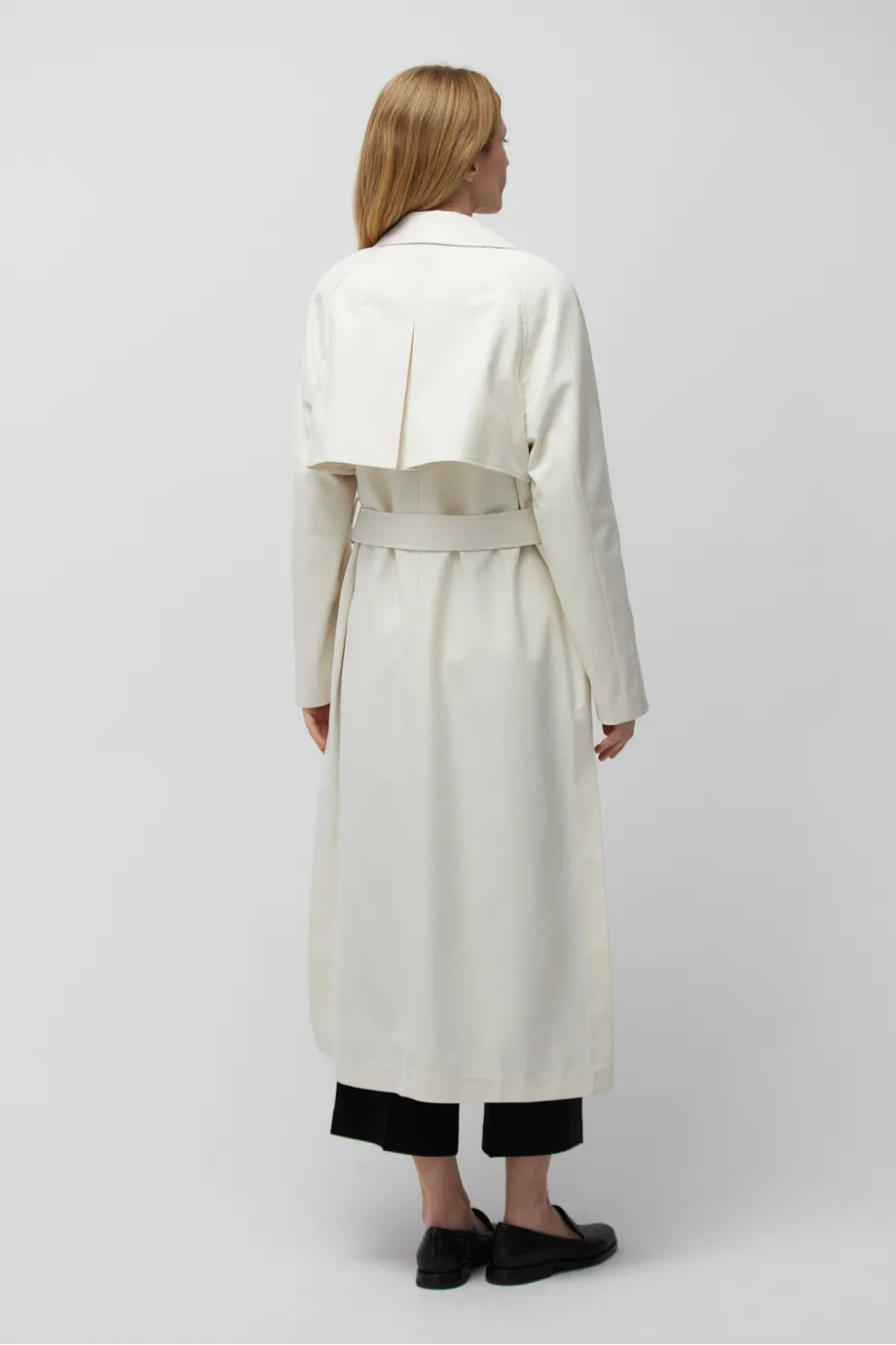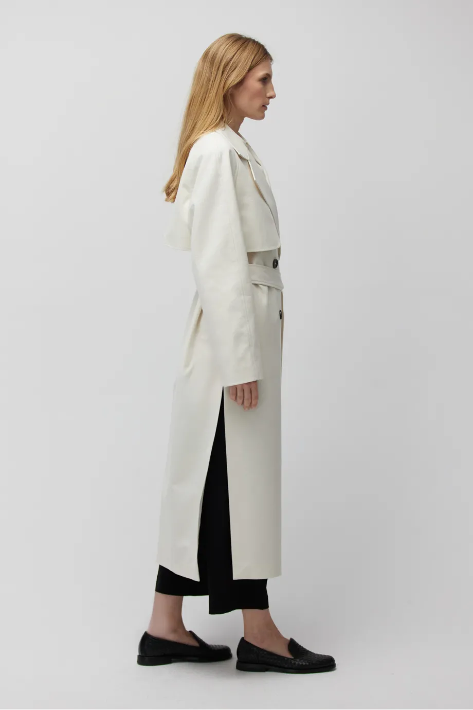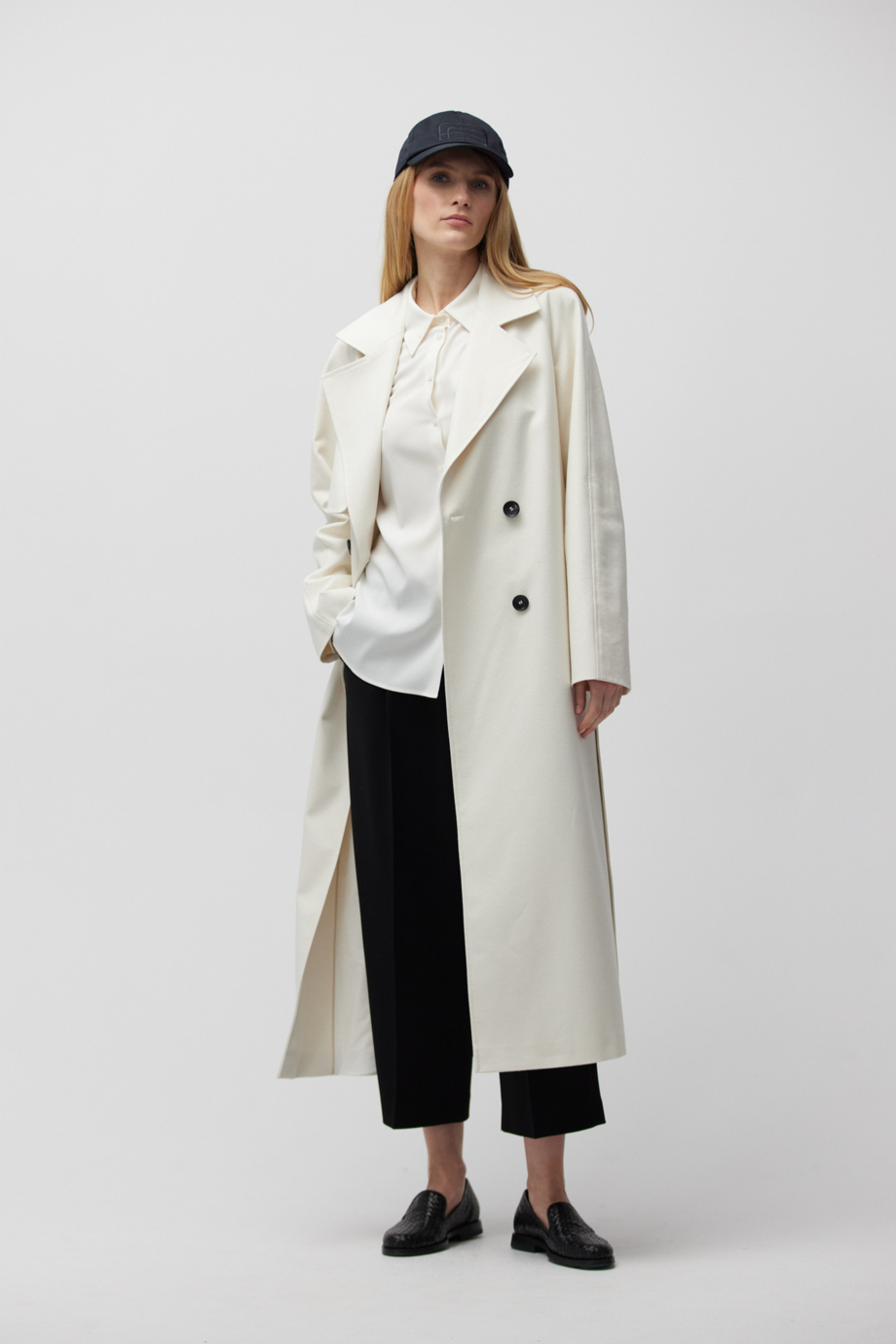 Model s polopodšívkou, s kapsami, bočními rozparky, volným střihem a zády na kohoutku.