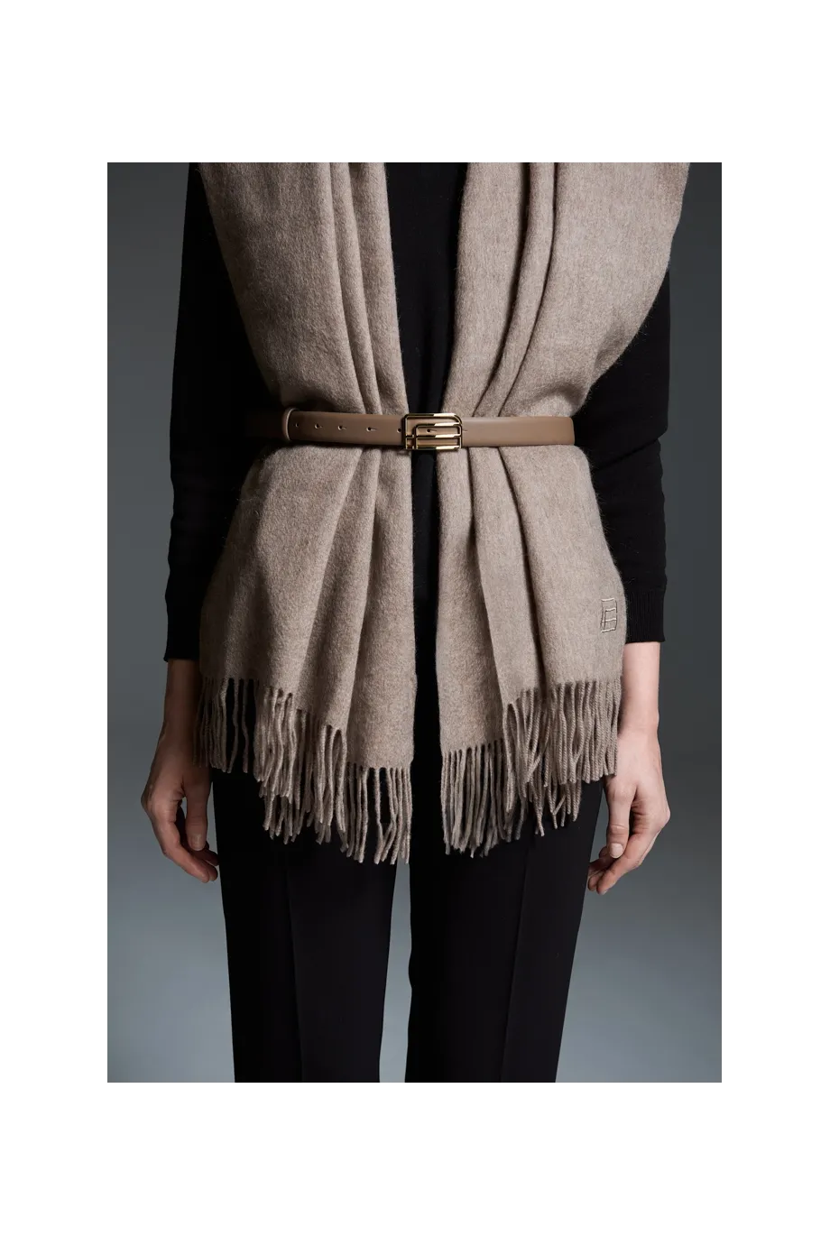 Moderní přezka v jasně zlaté barvě, zdobená novým logem značky Patrizia Aryton, mu dodává charakter.