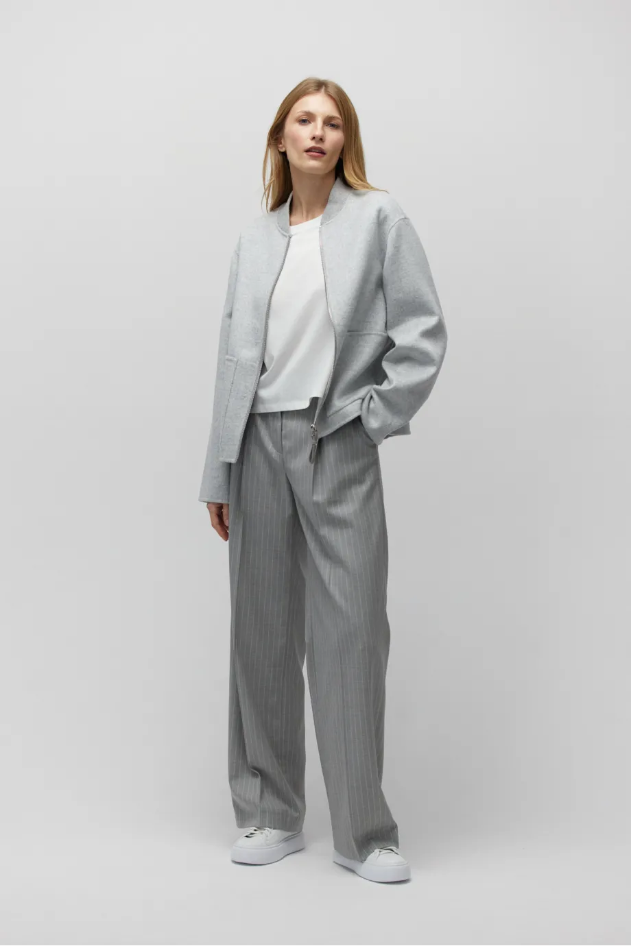 Modelka na fotografii má 177 cm výšku, nosí velikost 36/38.