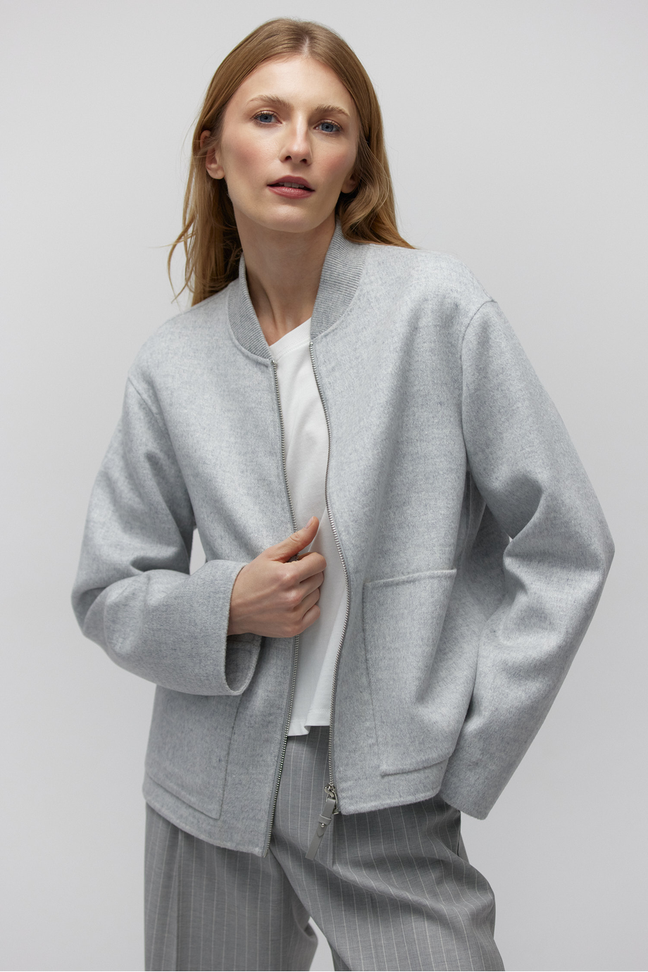 Šedá bunda se silk doubleface